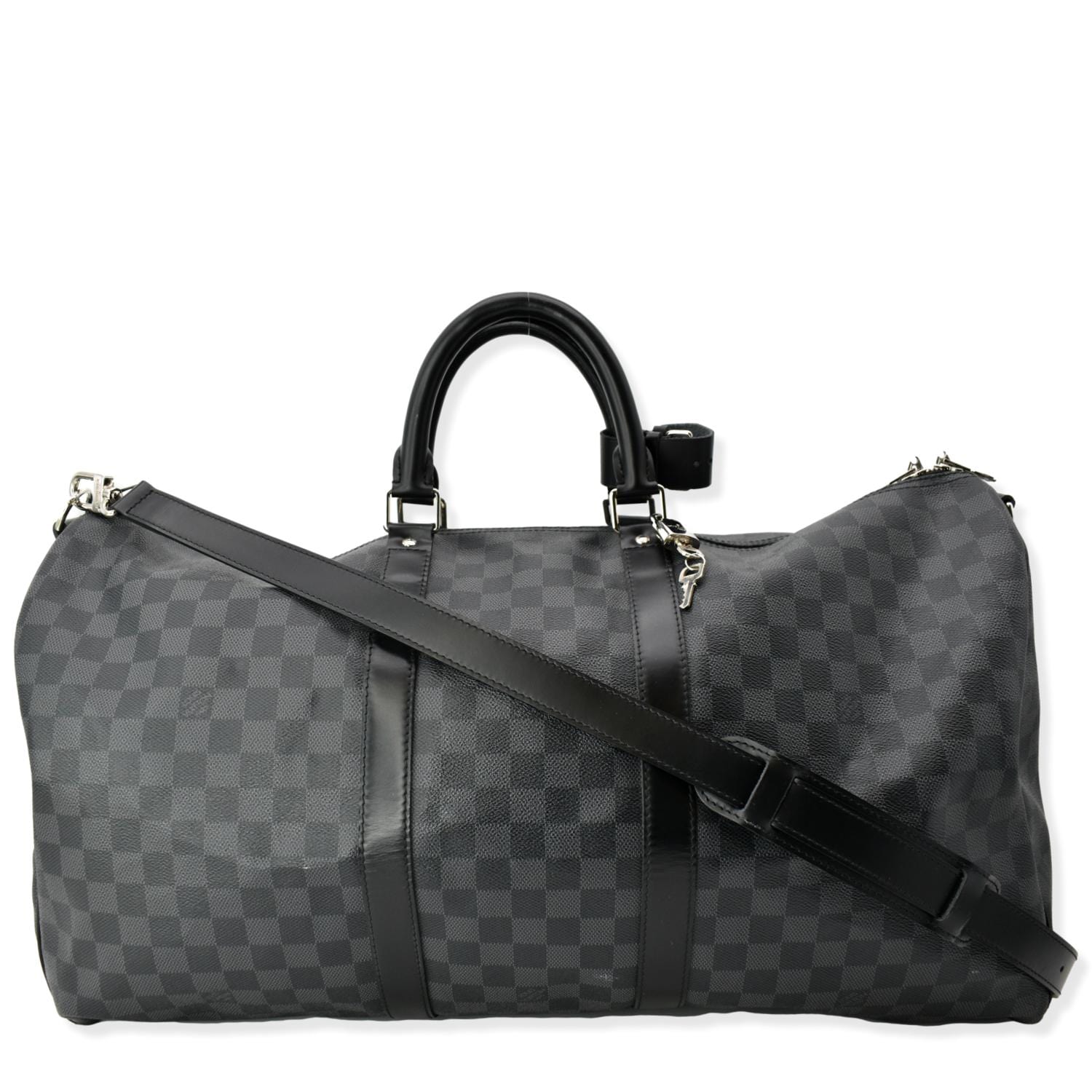 LOUIS VUITTON Keepall 55 Damier Graphite Bandouliere Travel Bag Black