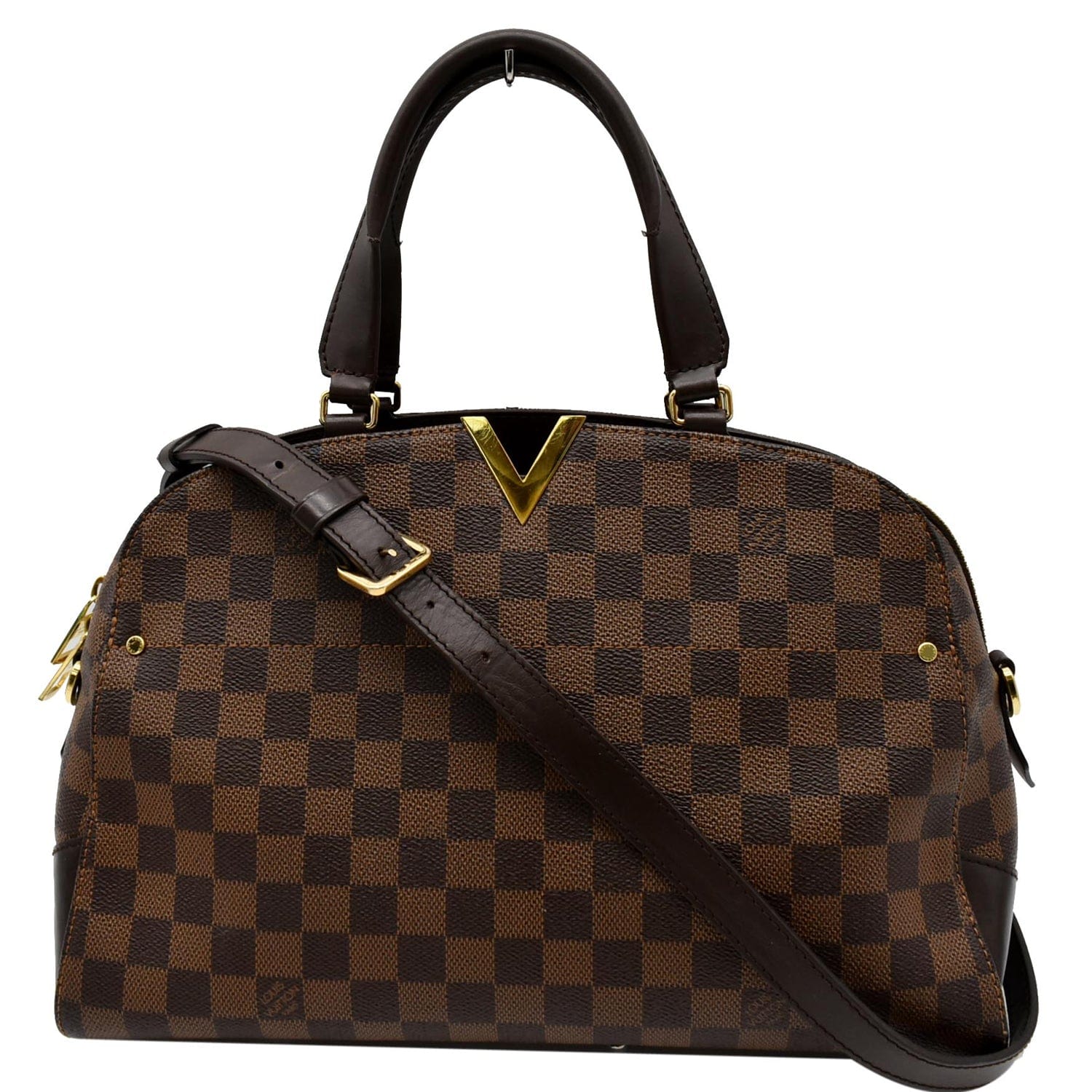 LOUIS VUITTON Kensington Bowling Damier Ebene Satchel Bag Brown
