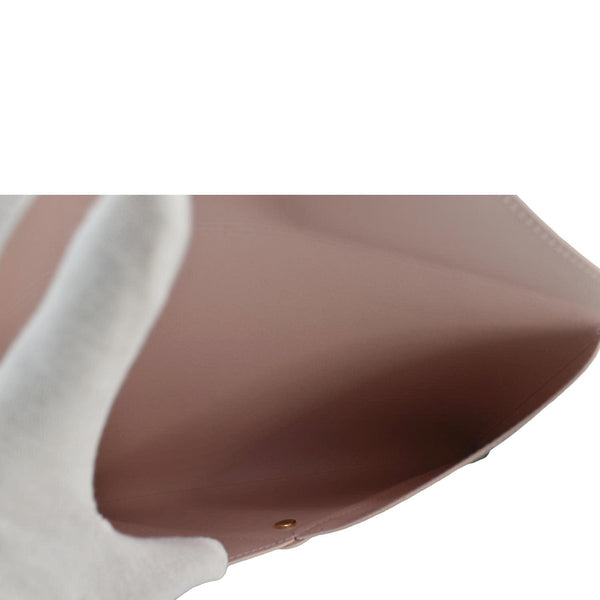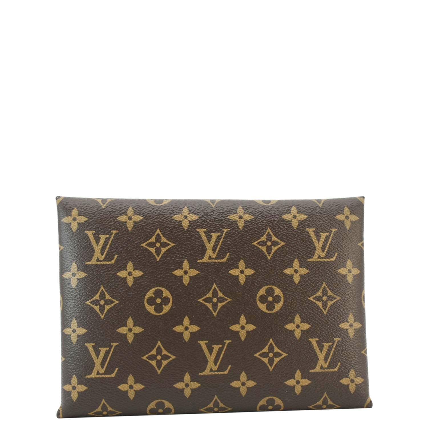 The Louis Vuitton Kirigami Pochette in Large Monogram Canvas features a sleek clutch design with a Rose Ballerine interior. It offers a versatile and stylish way to carry essentials, with the iconic LV monogram on the exterior and a pop of soft pink inside.