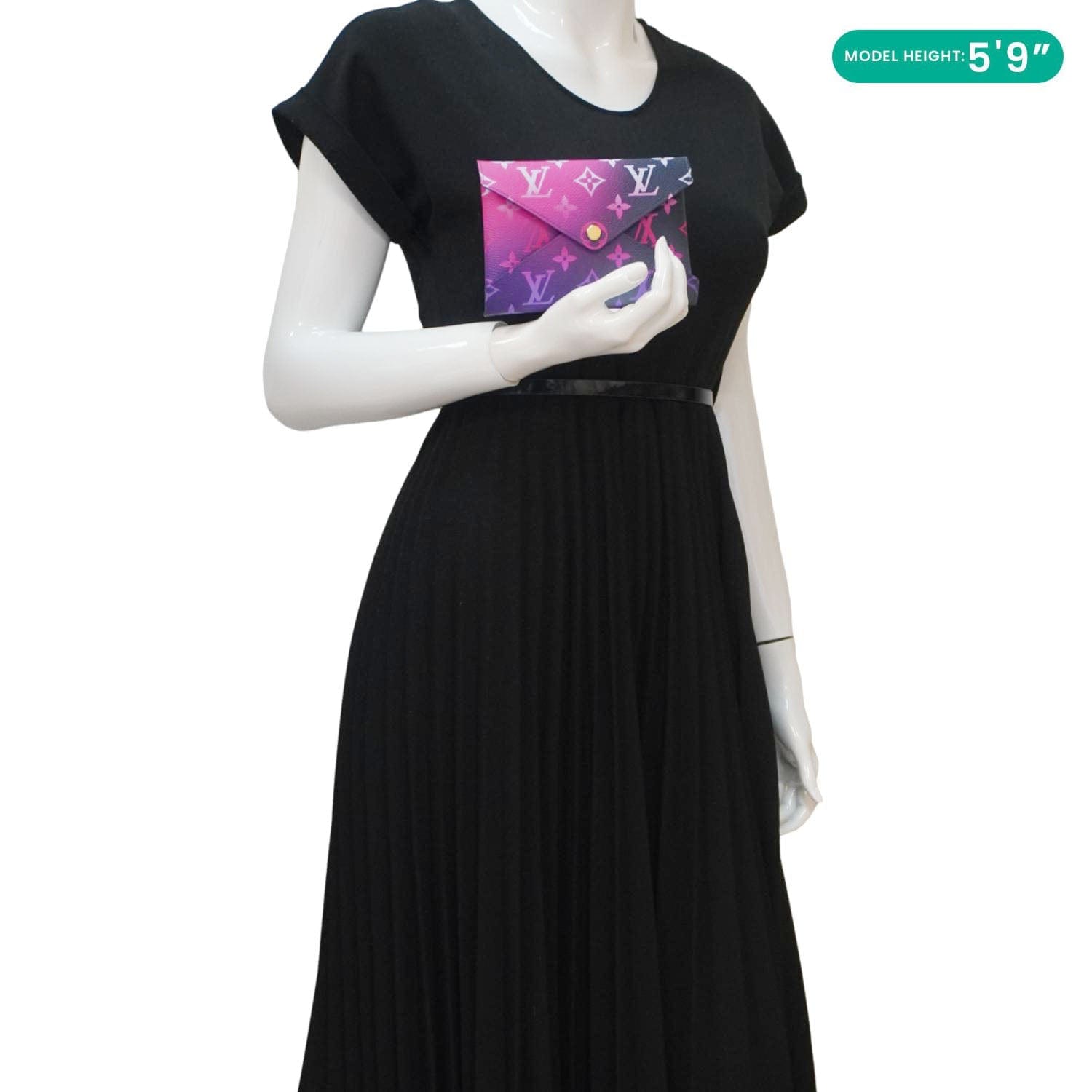 The Louis Vuitton Kirigami Medium Pochette in Monogram "Spring in the City" Midnight Fuchsia showcases a bold pink gradient. It's versatile and stylish and perfect for carrying essentials like a passport, phone, or small accessories.