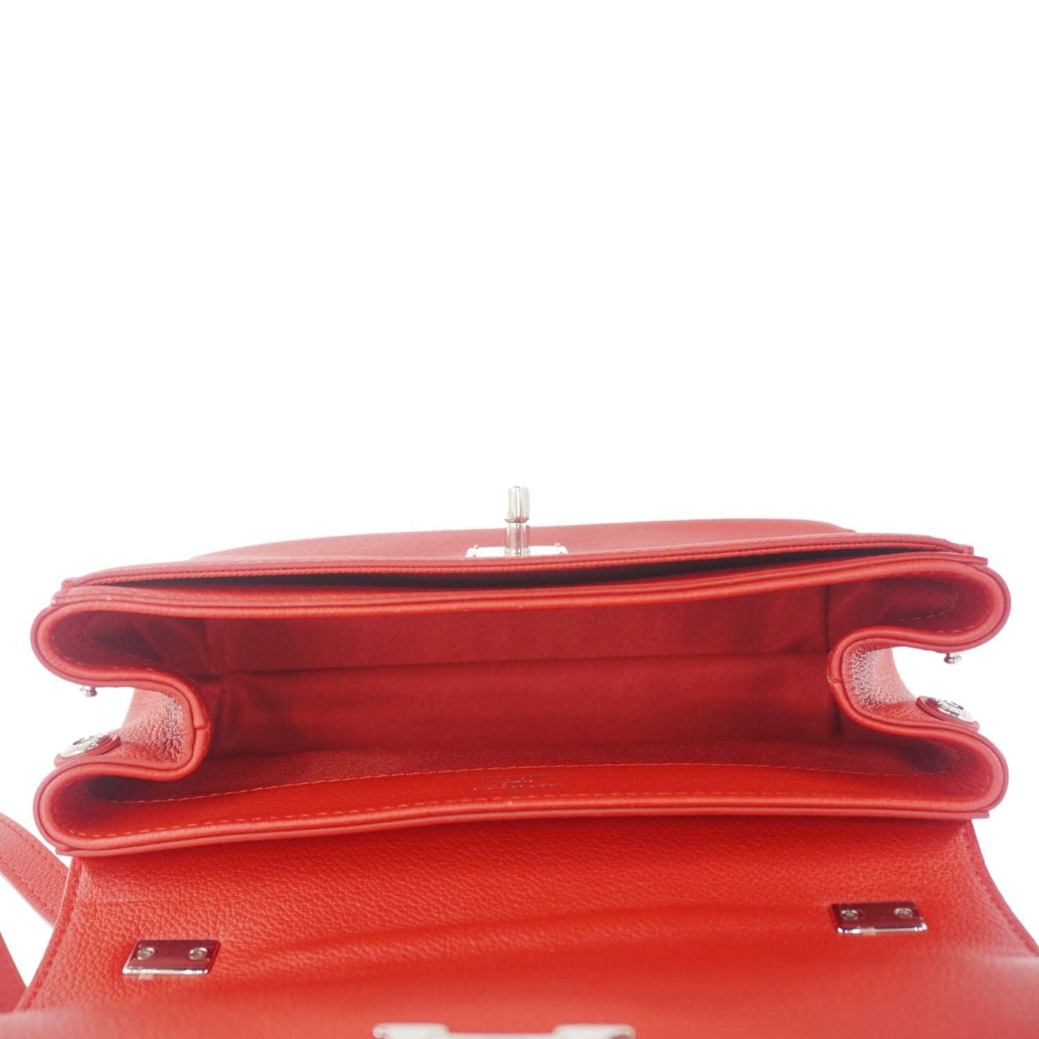 The Louis Vuitton Lockme Ever BB II is a chic, compact crossbody in luxurious red leather. It features a structured silhouette and an iconic LV twist-lock closure. This elegant and compact bag is perfect for both casual and formal occasions.