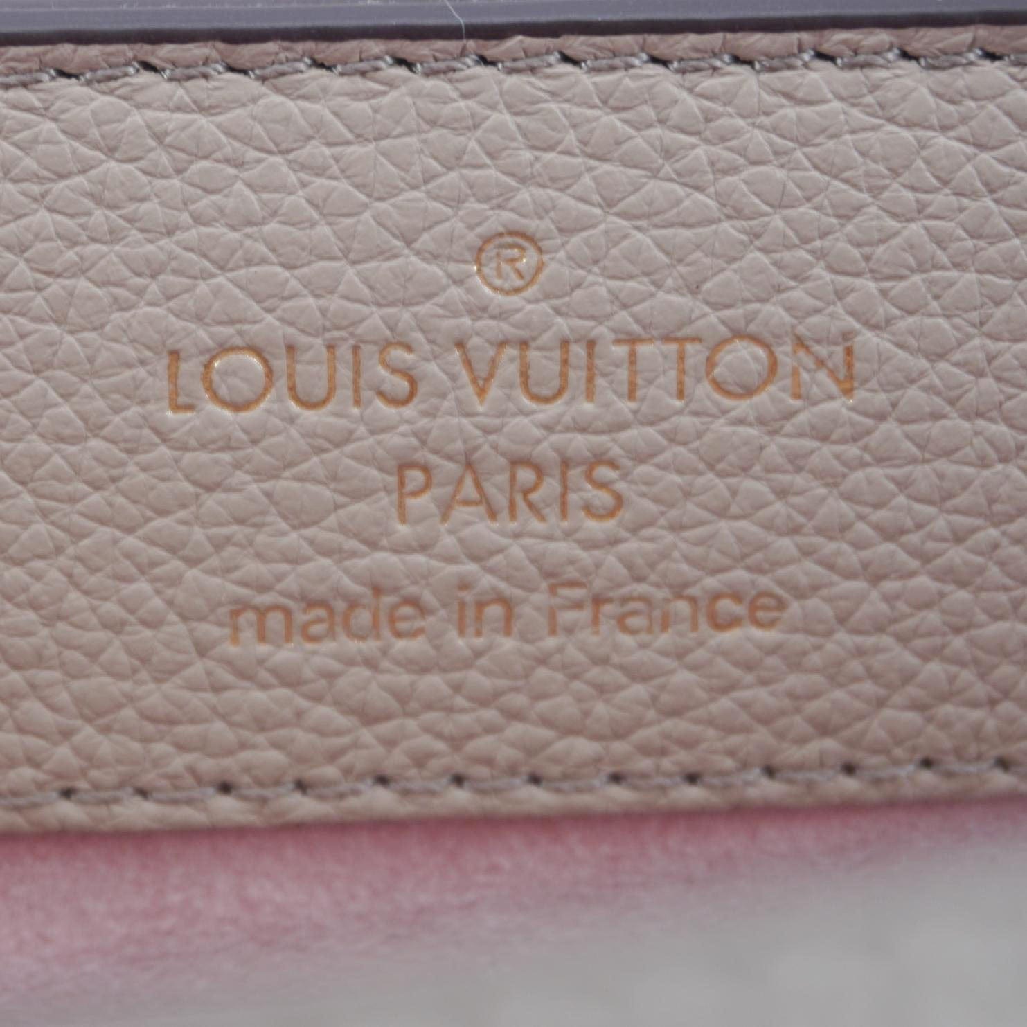 The Louis Vuitton Lockme Ever MM shoulder bag in greige leather features a sleek, structured silhouette with the signature LV twist-lock closure. Its refined design and spacious interior make it a versatile choice for both day and evening wear.