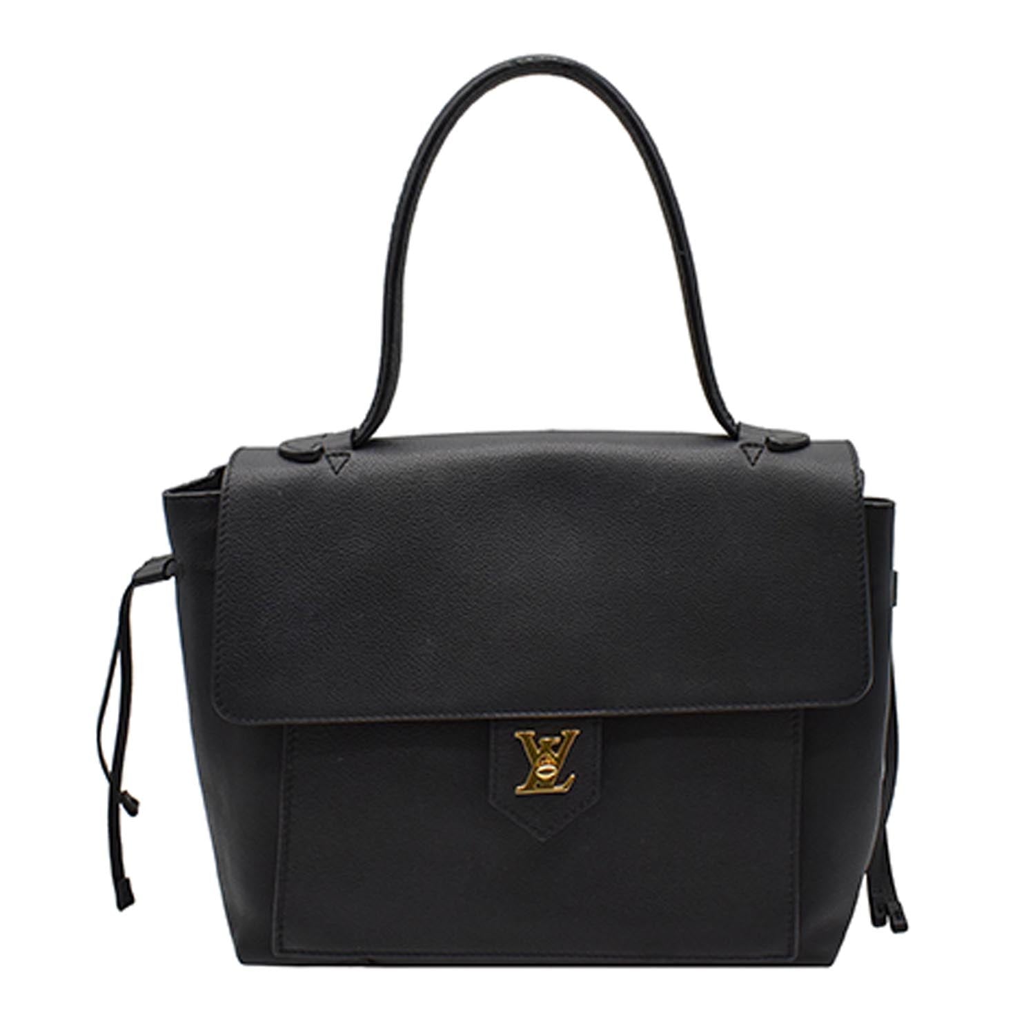 LOUIS VUITTON Women Lockme MM Leather Satchel Bag Black