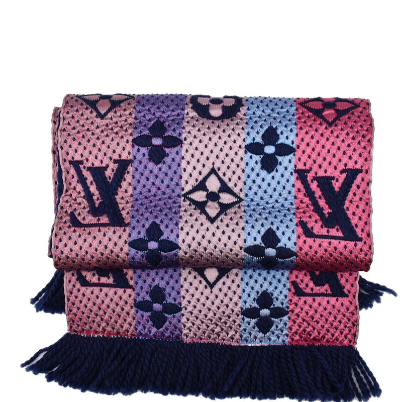 LOUIS VUITTON Logomania Rainbow Wool Silk Scarf Navy