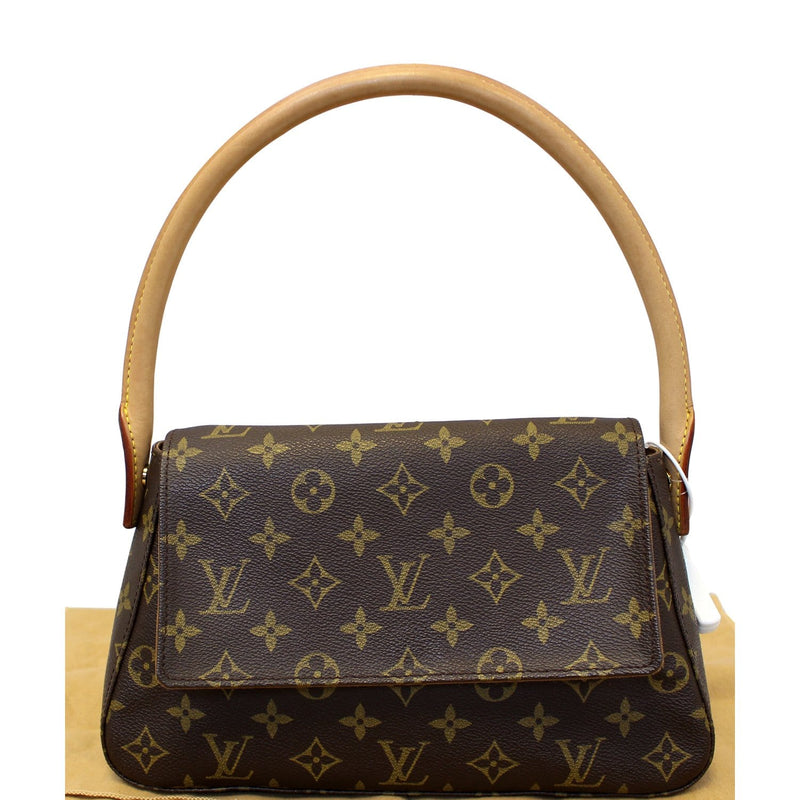 Louis Vuitton Monogram Canvas Mini Looping bag has a unique and modern structure and is perfect for day or night. It is the smallest member of the Looping family which all have the padded natural leather swiveling arc handle.