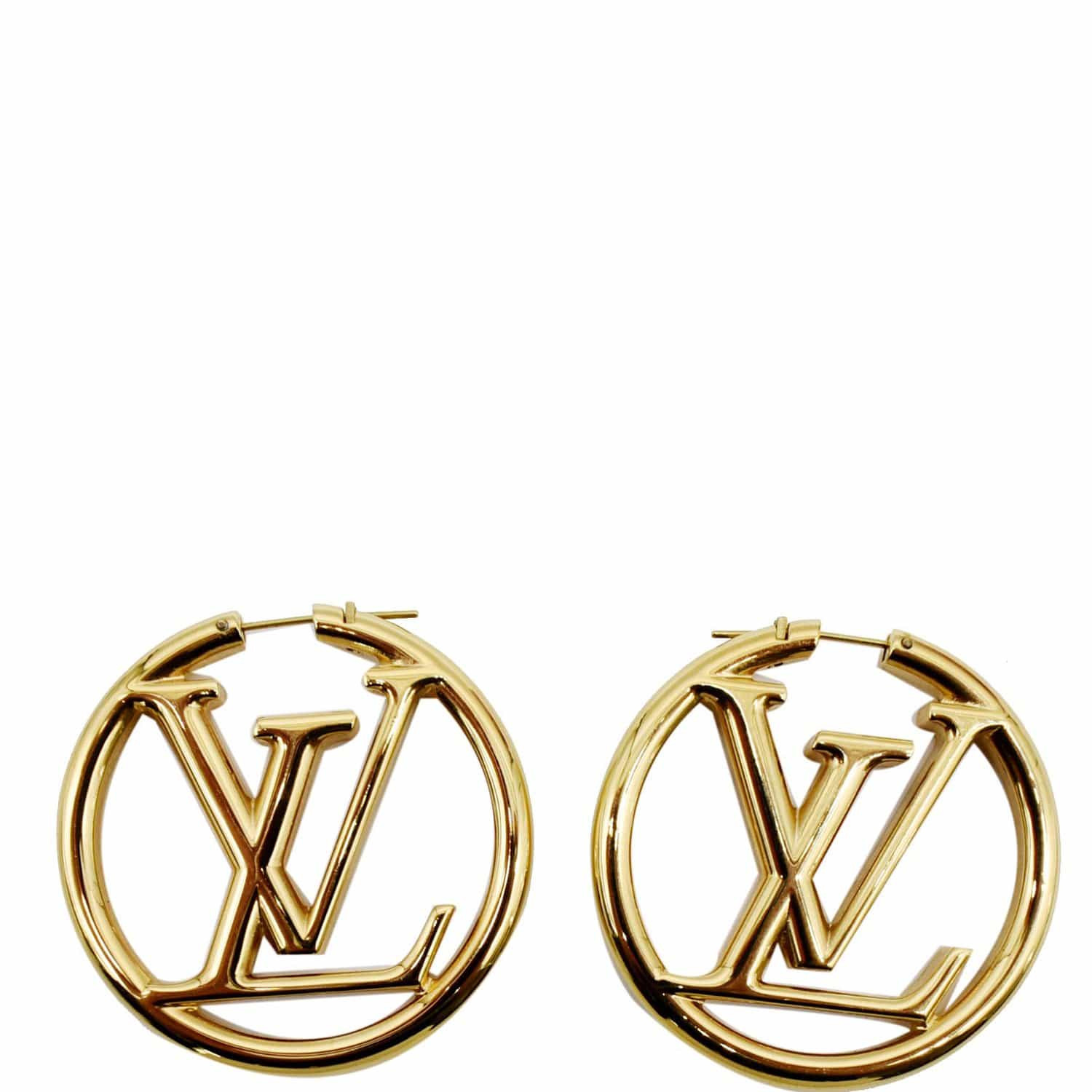 LOUIS VUITTON Louise Hoop Embossed LV Circle Earrings Gold