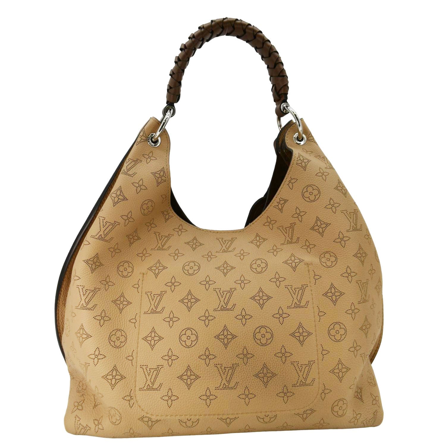 LOUIS VUITTON Carmel Mahina Leather Hobo Bag in Beige