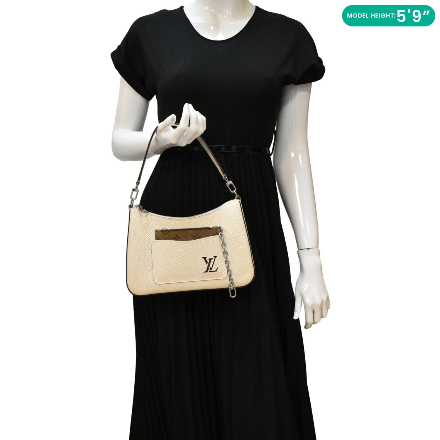 Elevate your look with the "LOUIS VUITTON Marelle Epi Leather Shoulder Bag" in sophisticated Beige, showcasing iconic design and luxurious craftsmanship for a versatile and chic accessory.