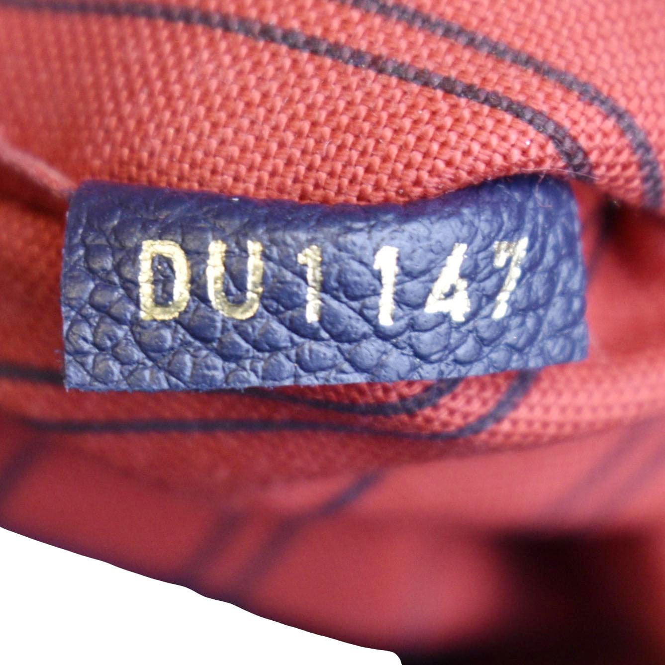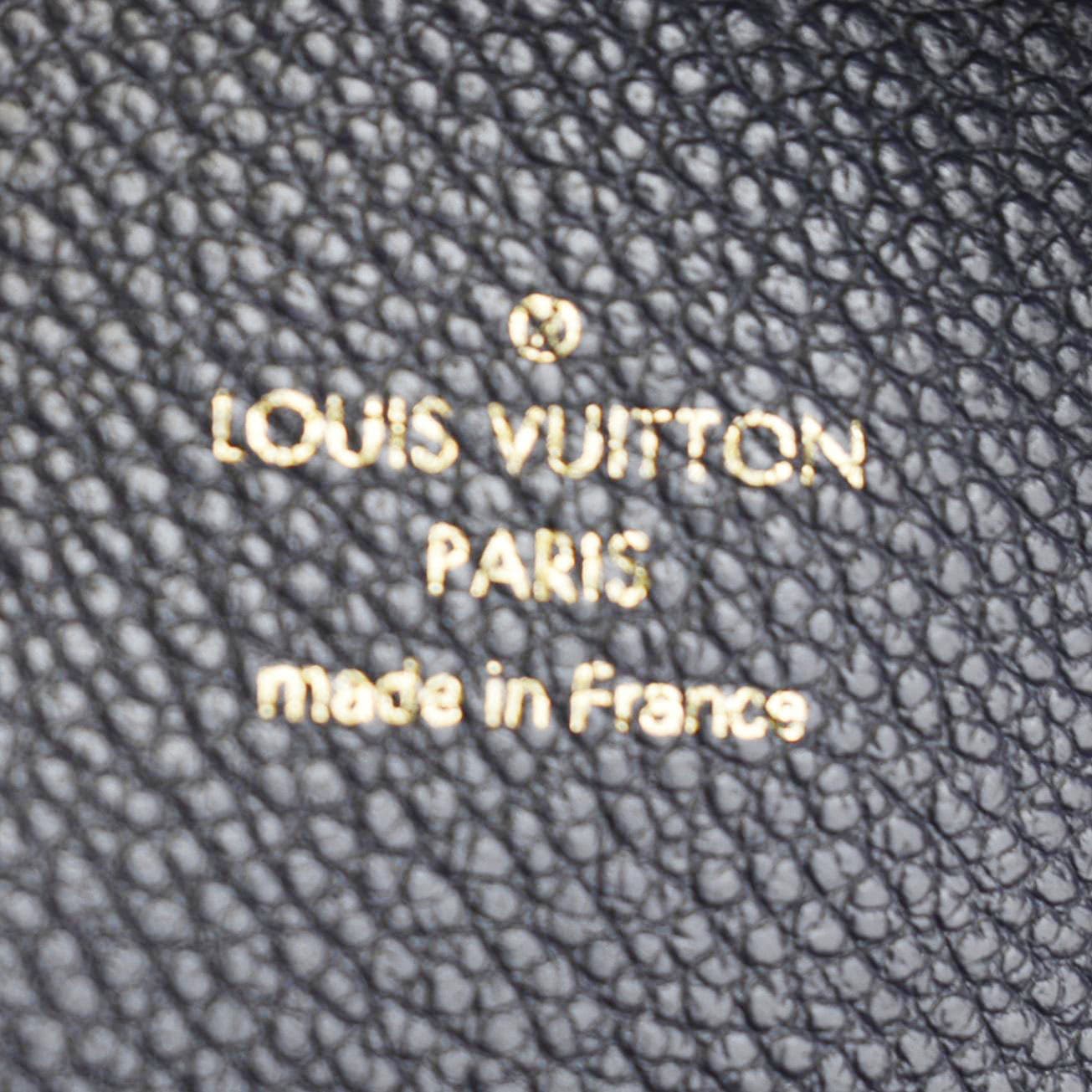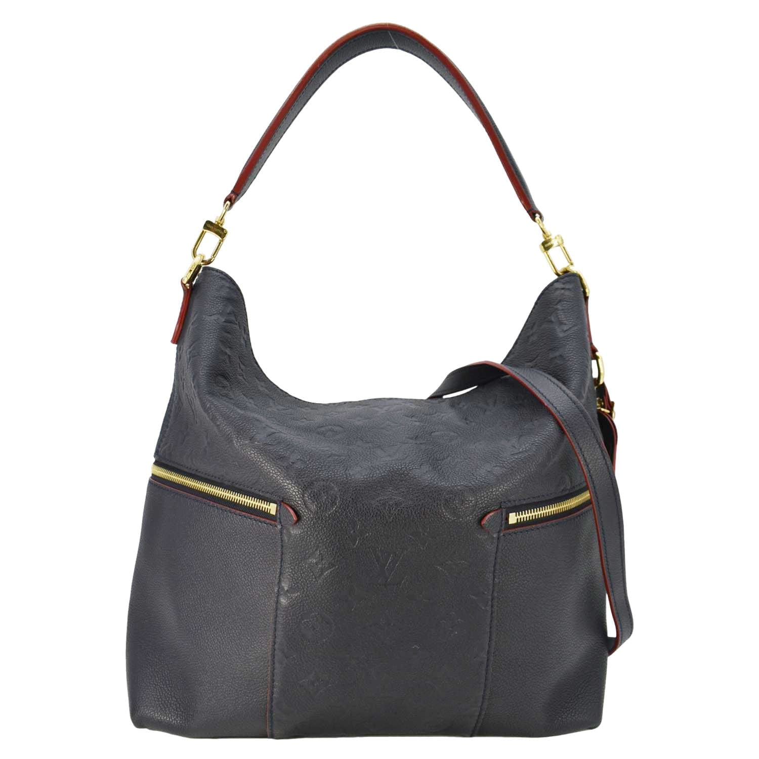 The LOUIS VUITTON Melie Hobo Shoulder Bag in navy blue Monogram Empreinte leather features embossed Monogram patterns and a soft, structured silhouette. Its spacious interior and adjustable strap provide both style and practicality for everyday wear.