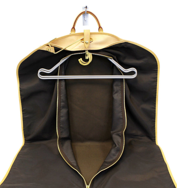 Louis Vuitton Monogram Canvas Garment Cover Bag is a classic and highly functional piece of luggage. The garment cover bag has easy access to the zippered interior compartment and comes with a hanger. A unique locking mechanism holds the hanger to help keep your fine suits and shirts organized during quick trips. This is definitely the most stylish and elegant way to carry your suits wrinkle free!