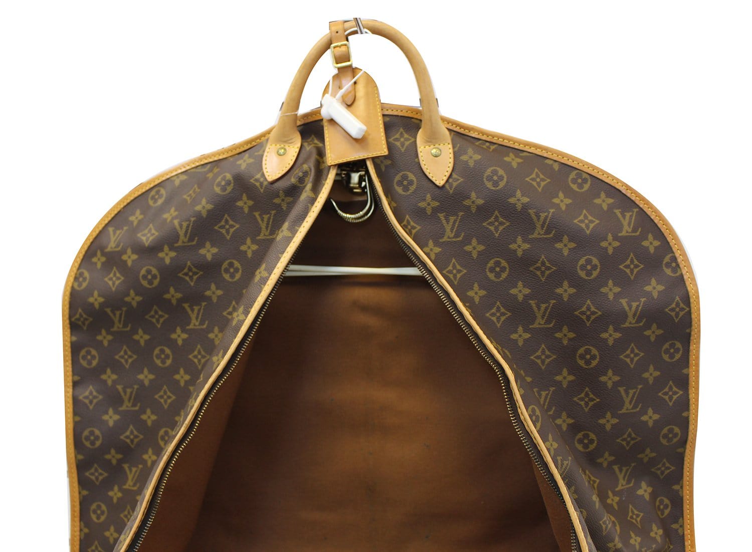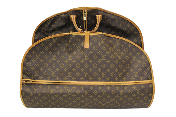 Louis Vuitton Monogram Canvas Garment Cover Bag is a classic and highly functional piece of luggage. The garment cover bag has easy access to the zippered interior compartment and comes with a hanger. A unique locking mechanism holds the hanger to help keep your fine suits and shirts organized during quick trips.