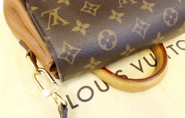 Louis Vuitton Eden PM is a newer creation from the legendary house of Louis Vuitton. Paying homage to timeless Louis Vuitton elegance, it features heritage-inspired details with a modern twist. Playful Monogram Canvas is highlighted by blue colored calf leather, vachetta leather trim, and a classic Louis Vuitton logo engraved s-lock.