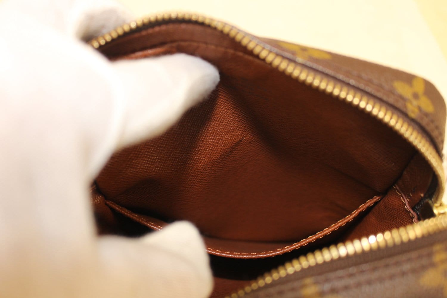 Louis Vuitton Monogram Canvas Danube Bag is perfect for daytime style. The Danube's squared shape is reminiscent of classic camera bags. Scaled for cell phone, wallet, and smaller essentials, with a convenient small inside pocket, an open outside pocket, and zip closure, this bag is great for sightseeing or if you're feeling like traveling light for the day.