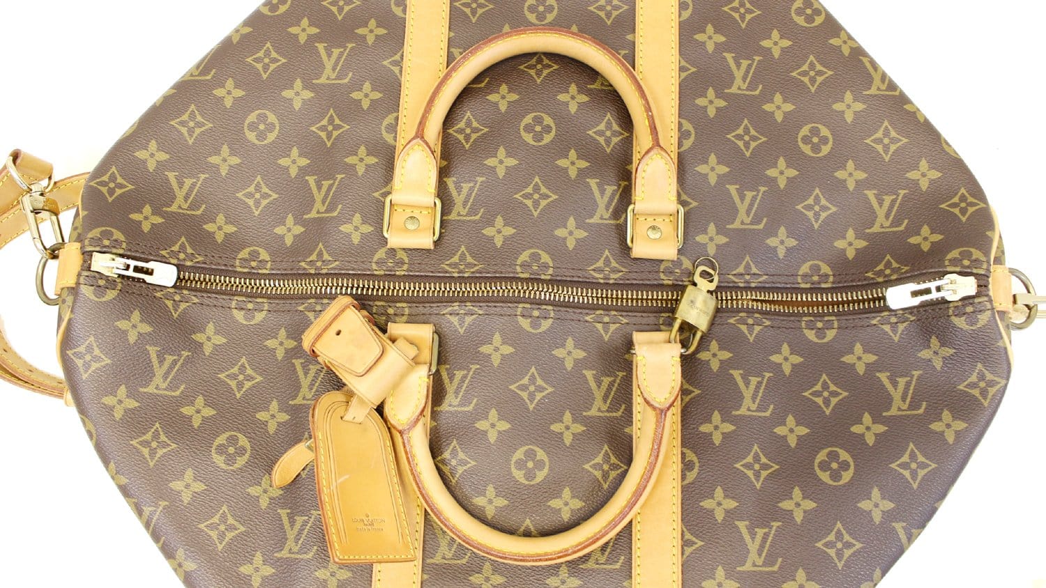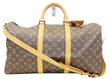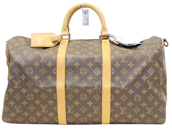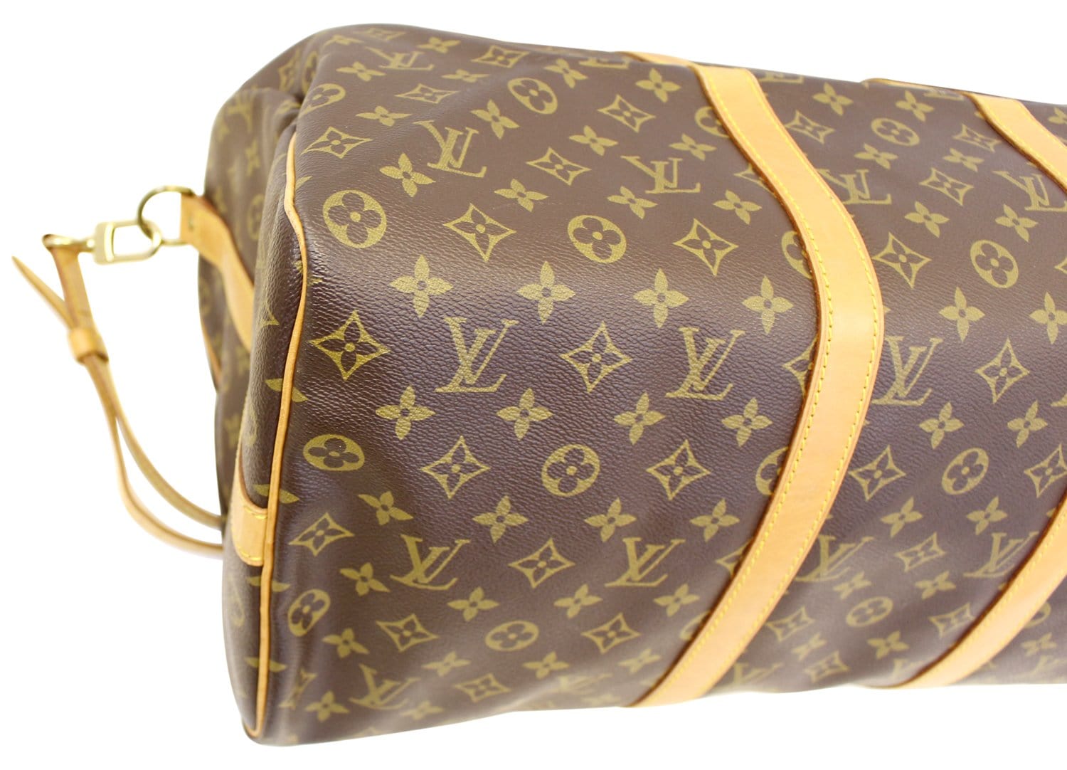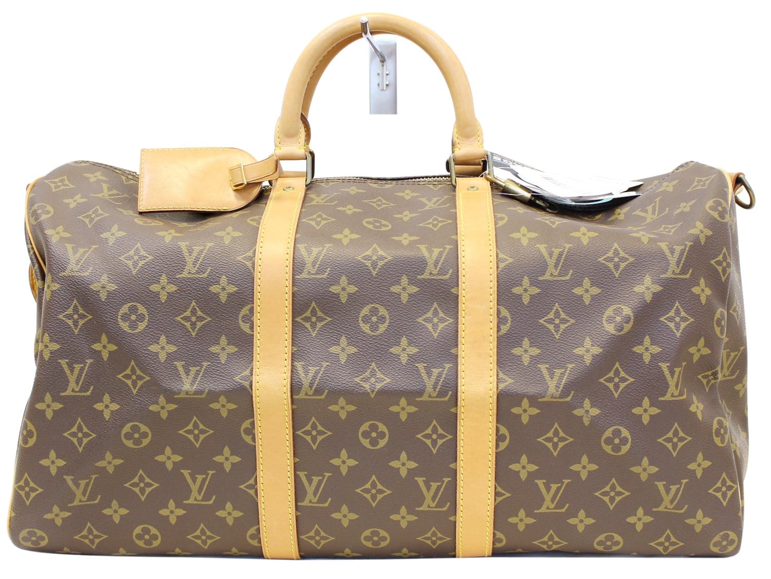 LOUIS VUITTON Travel Bag Monogram Keepall 50 Bandouliere Used is for travel or weekend getaway. With its ultra-spacious interior and the capability of folding flat, this bag is versatile as an additional travel piece. The Bandouliere version comes with an adjustable shoulder strap to make carrying this piece even easier.