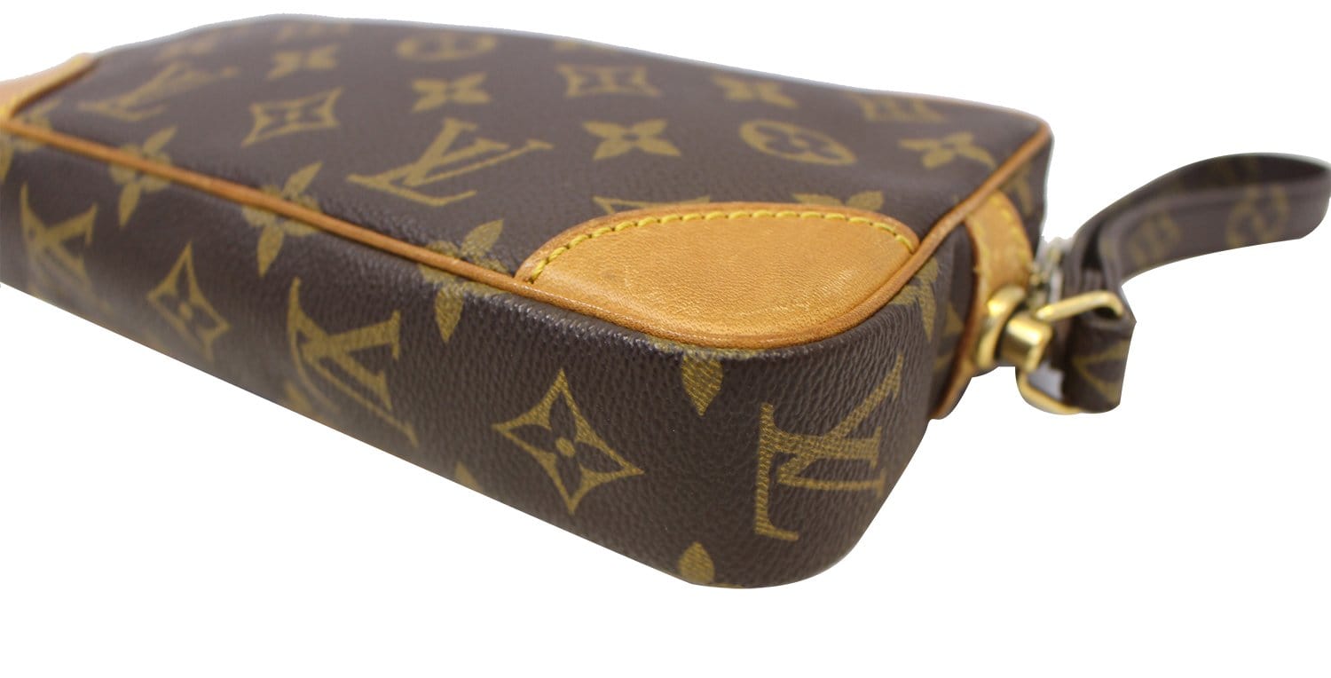 Louis Vuitton Monogram Canvas Rare Marly Dragonne PM Clutch Bag is perfect for day or night and big enough to hold all your girly essentials such as cell phone, wallet and make-up. Its compact size is reminiscent of vintage handbags and also features a wristlet strap, making it a bag that is also ideal for traveling.