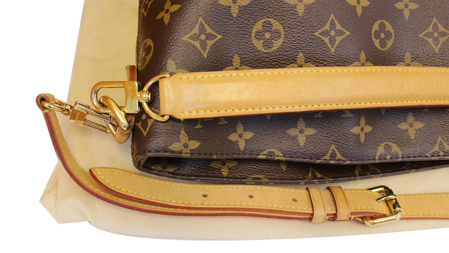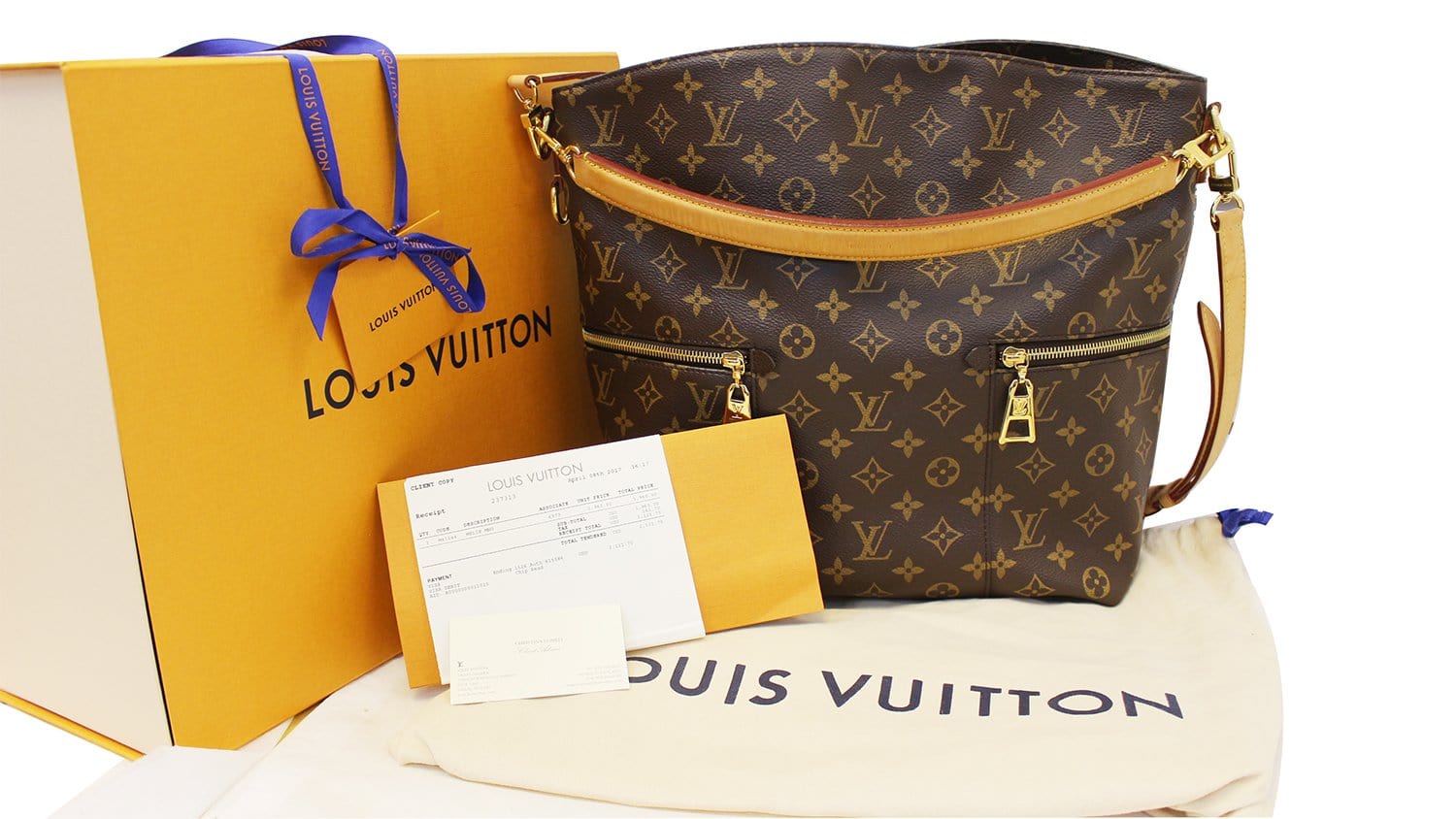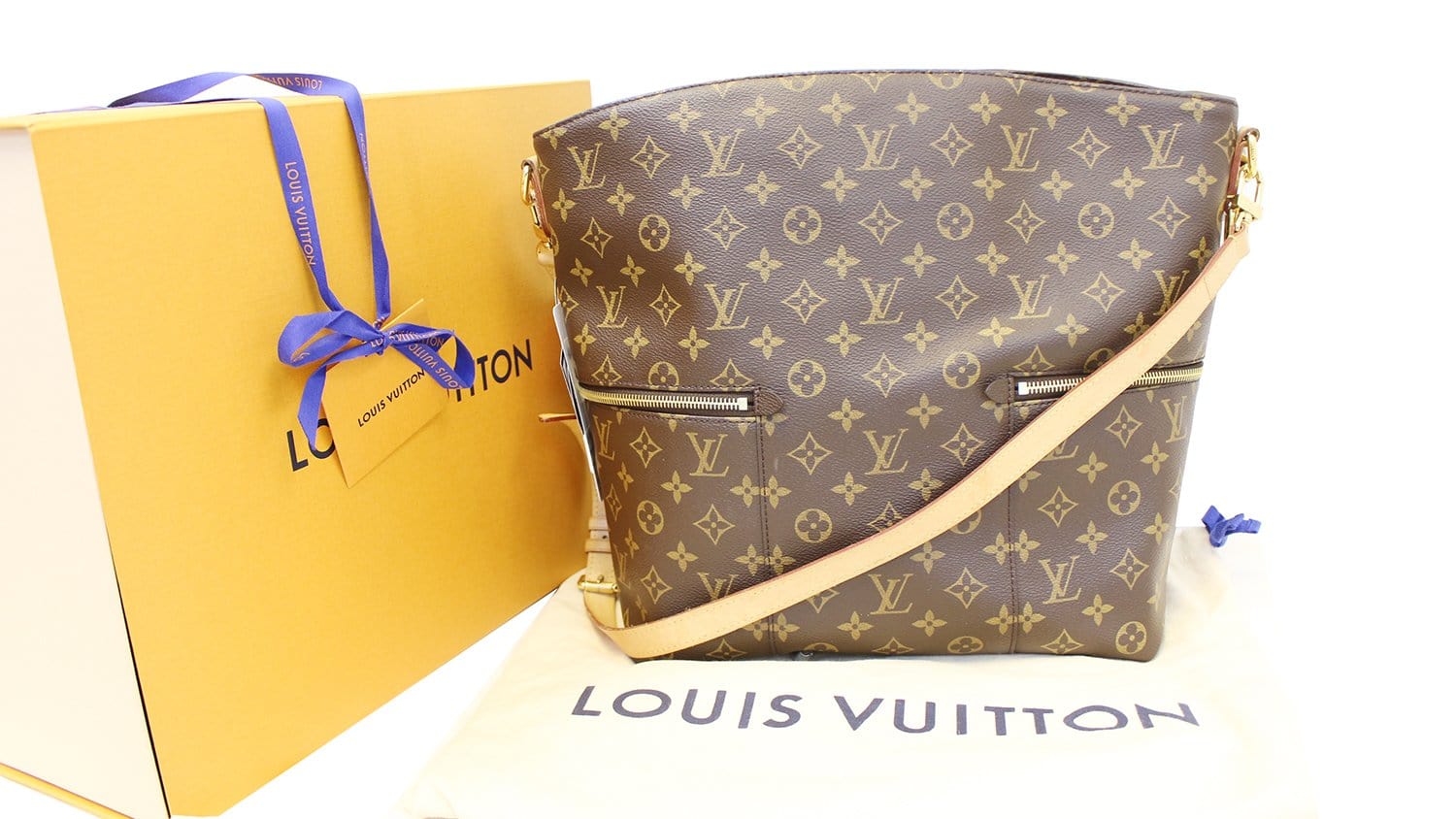 Melie bag is one of Louis Vuitton's newest creations and features a fresh take on the classic hobo shape. The Melie is perfect for most occasions and makes an excellent every day bag! This bag features the iconic Monogram canvas with gold tone hardware, removable short and long strap and two convenient front zip pockets. The interior is large enough to hold all that you'll need!