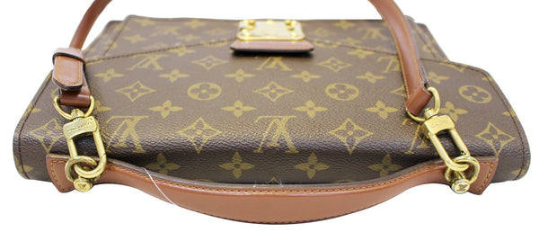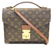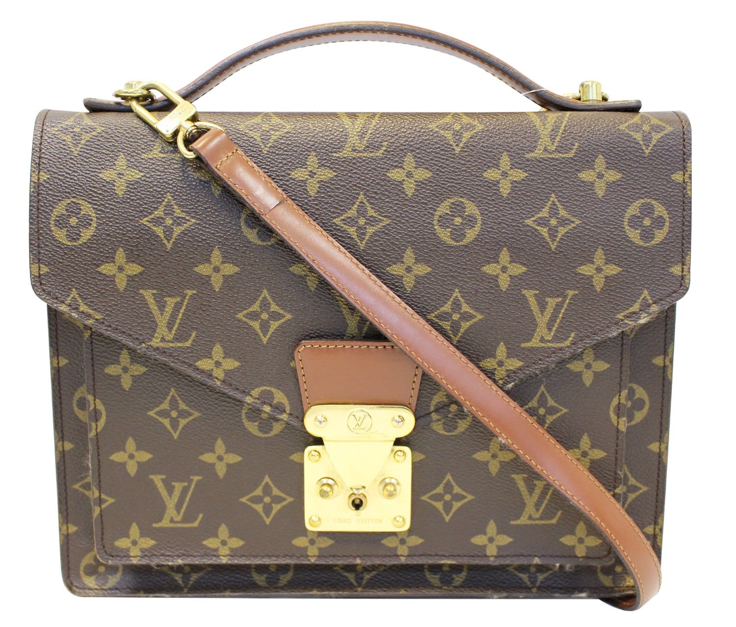 Louis Vuitton Monogram Canvas Monceau Bag features a sleek structured design styled as a small briefcase. It also has an S-lock closure and can be hand-held or carried on the shoulder for hands-free convenience.