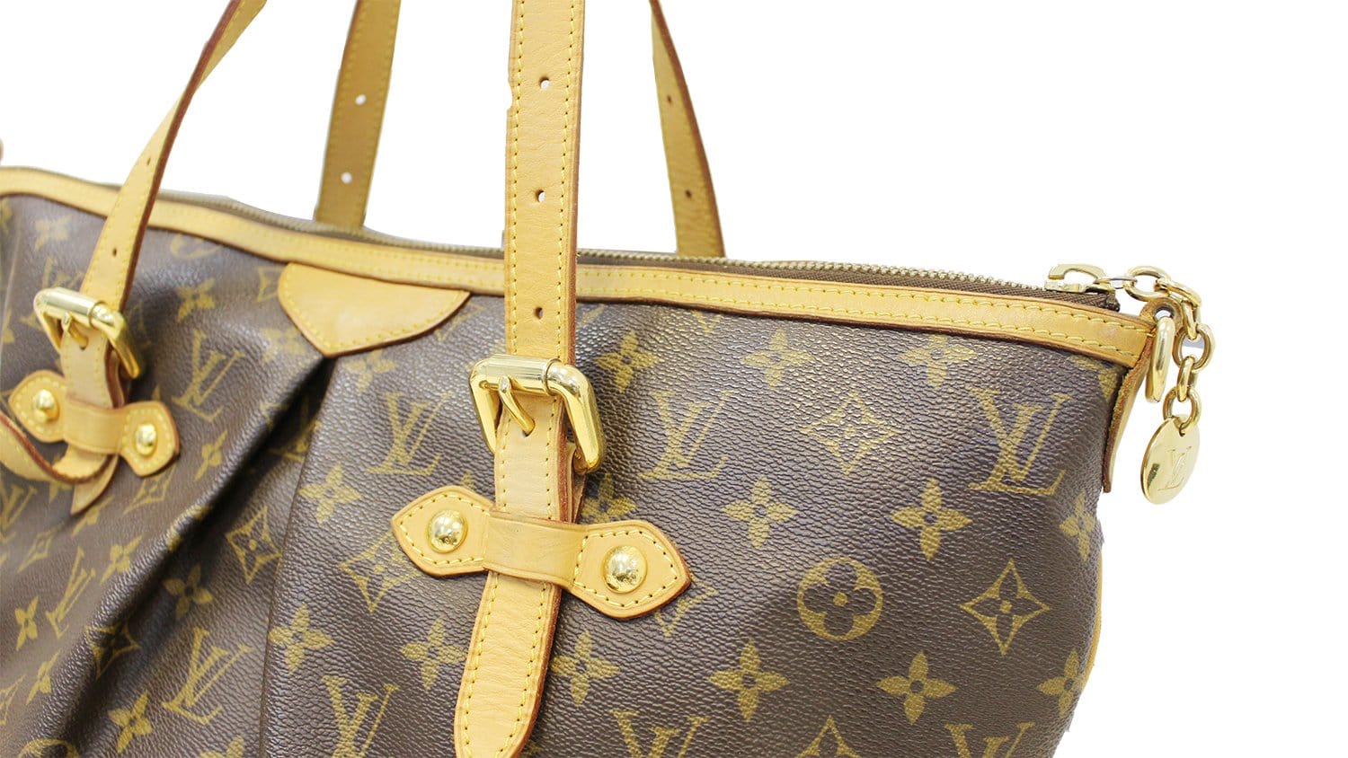 LOUIS VUITTON Used Handbag Monogram Palermo GM Tote Shoulder Bag is the one for you. It features stylish details such as inverted pleating and a gold tone zipper LV pull.