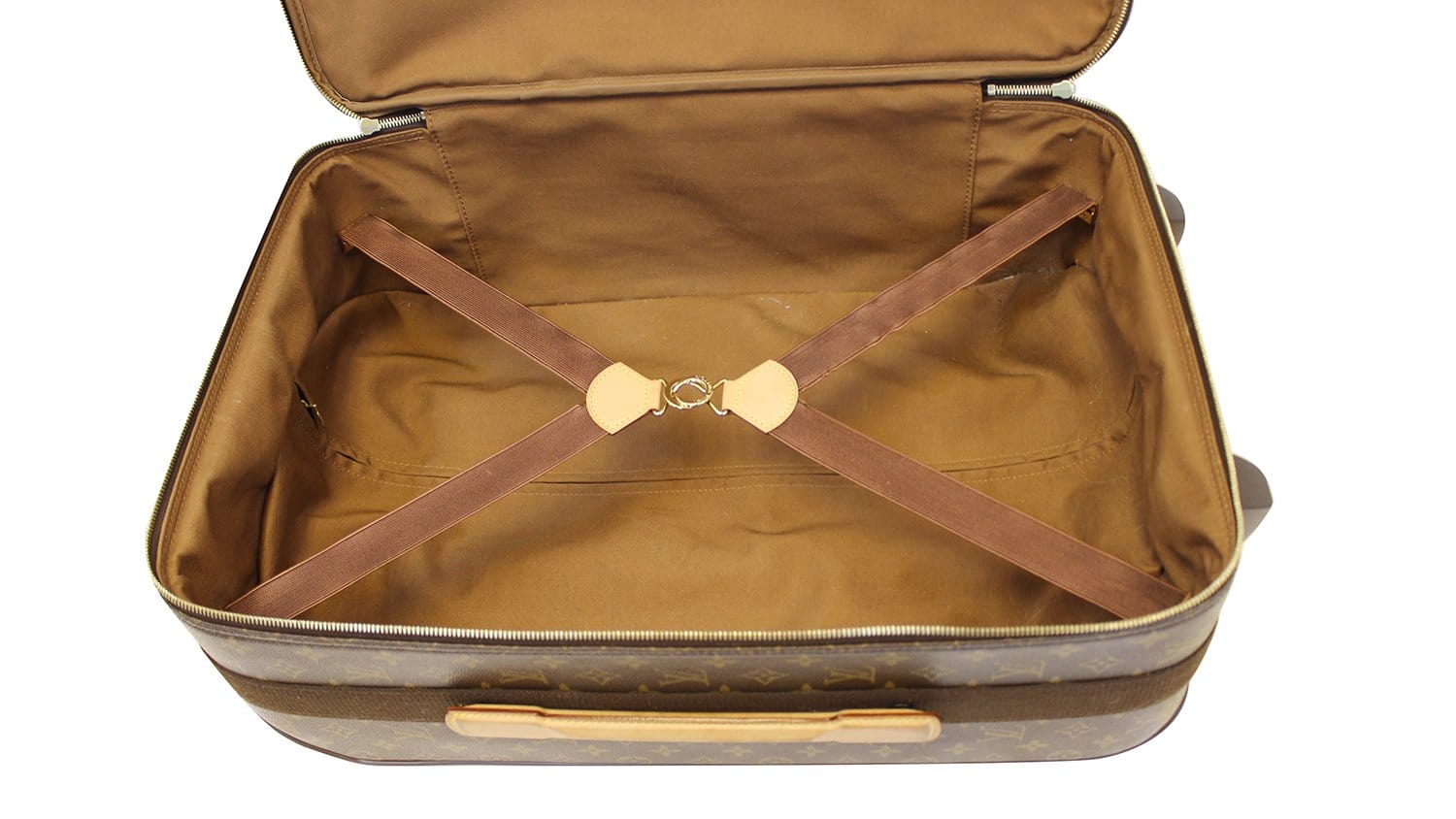 Louis Vuitton has been making world class luggage since 1896 and the Pegase 55 carries on the tradition of style and luxury. Considered by many to be the "world's ultimate carry-on", the Pegase 55 features Louis Vuitton's Damier coated canvas with chocolate brown leather trim. Smooth, noiseless wheels and leather padded retractable handle provide comfort after a long flight.