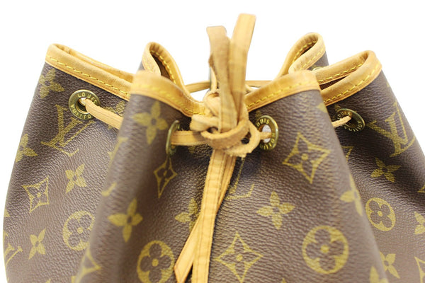 Louis Vuitton Monogram Canvas Petit Noe Bag is a timeless and favored piece that will never go out of style. It was originally created in 1932 to carry five bottles of Champagne. This is the smaller size of the Noe family. With its spacious interior and leather drawstring closure, this sophisticated and durable bag is perfect for everyday use.