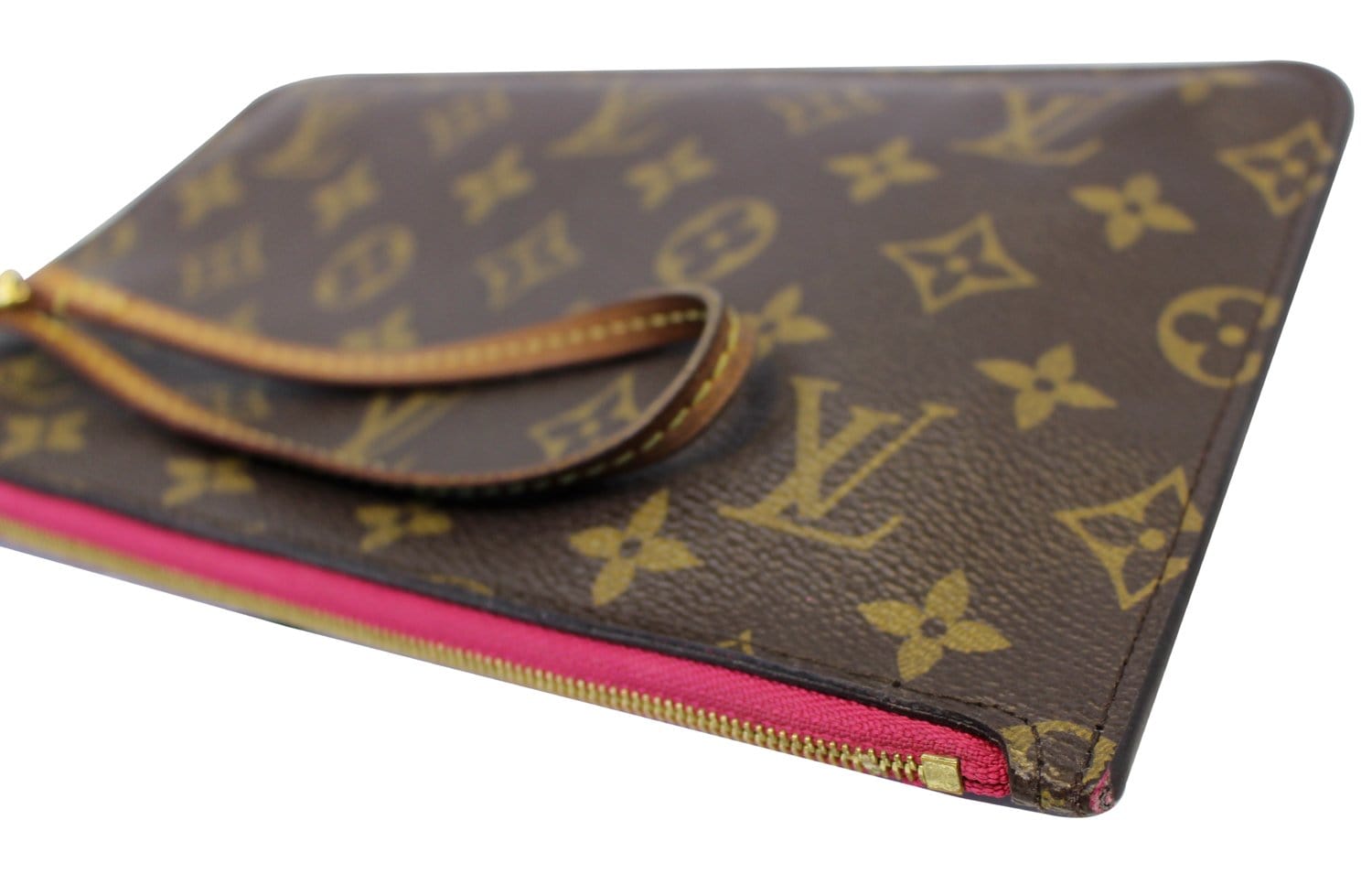 LOUIS VUITTON Monogram Canvas Pochette Wristlet Pouch Neverfull MM Fuchsia