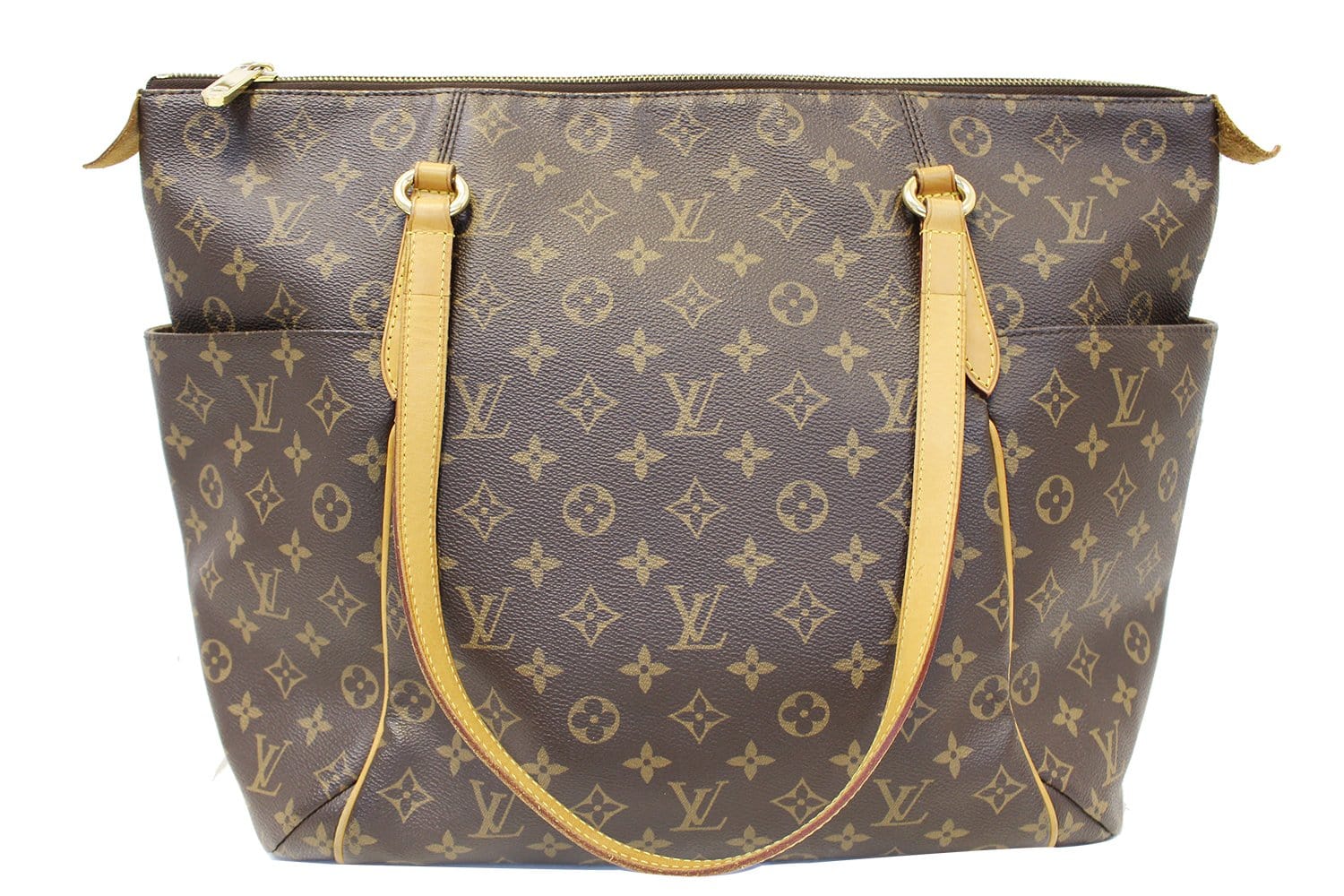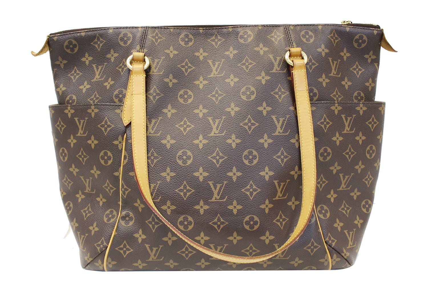 Louis Vuitton Monogram Canvas Totally GM Bag looks particularly striking in Monogram Canvas. It features a large yet lightweight design with an extra spacious interior and two large side pockets. This is a versatile tote that can be used everyday - even as an extra-luxurious diaper bag!