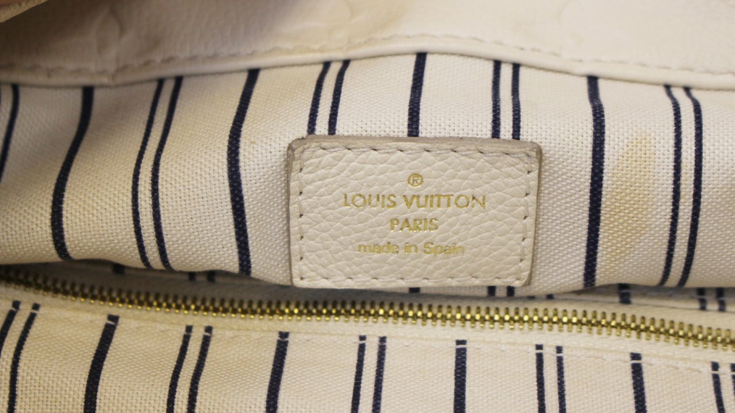 Louis Vuitton Neige Monogram Empreinte Leather Artsy MM Bag has a unique and modern structure. This roomy tote makes a perfect work or weekend bag, large enough to hold all your essentials in style. It features a detachable stylish Louis Vuitton key ring for exterior or interior use, and enough interior pockets to keep you organized on the go.