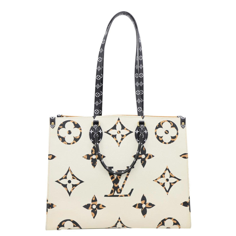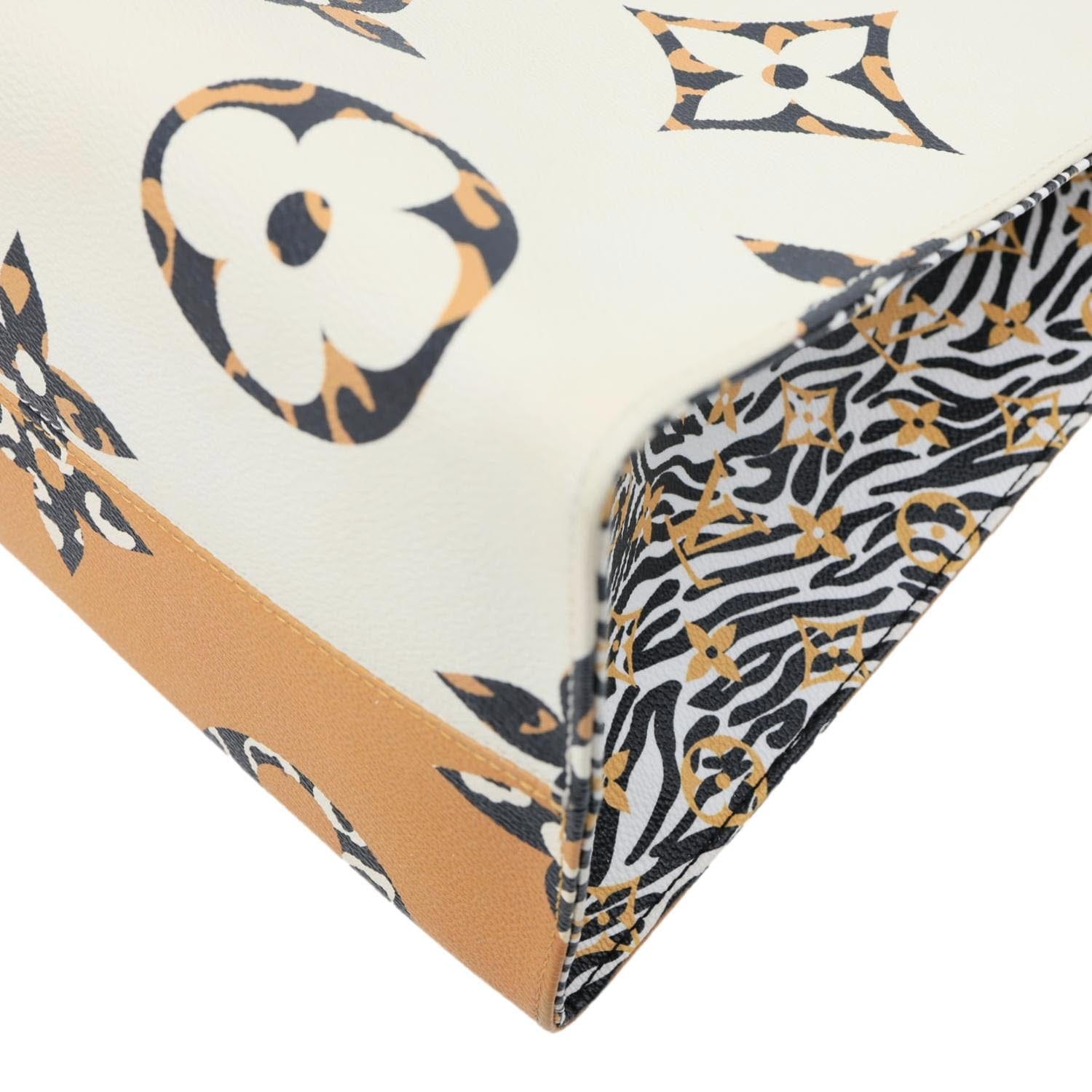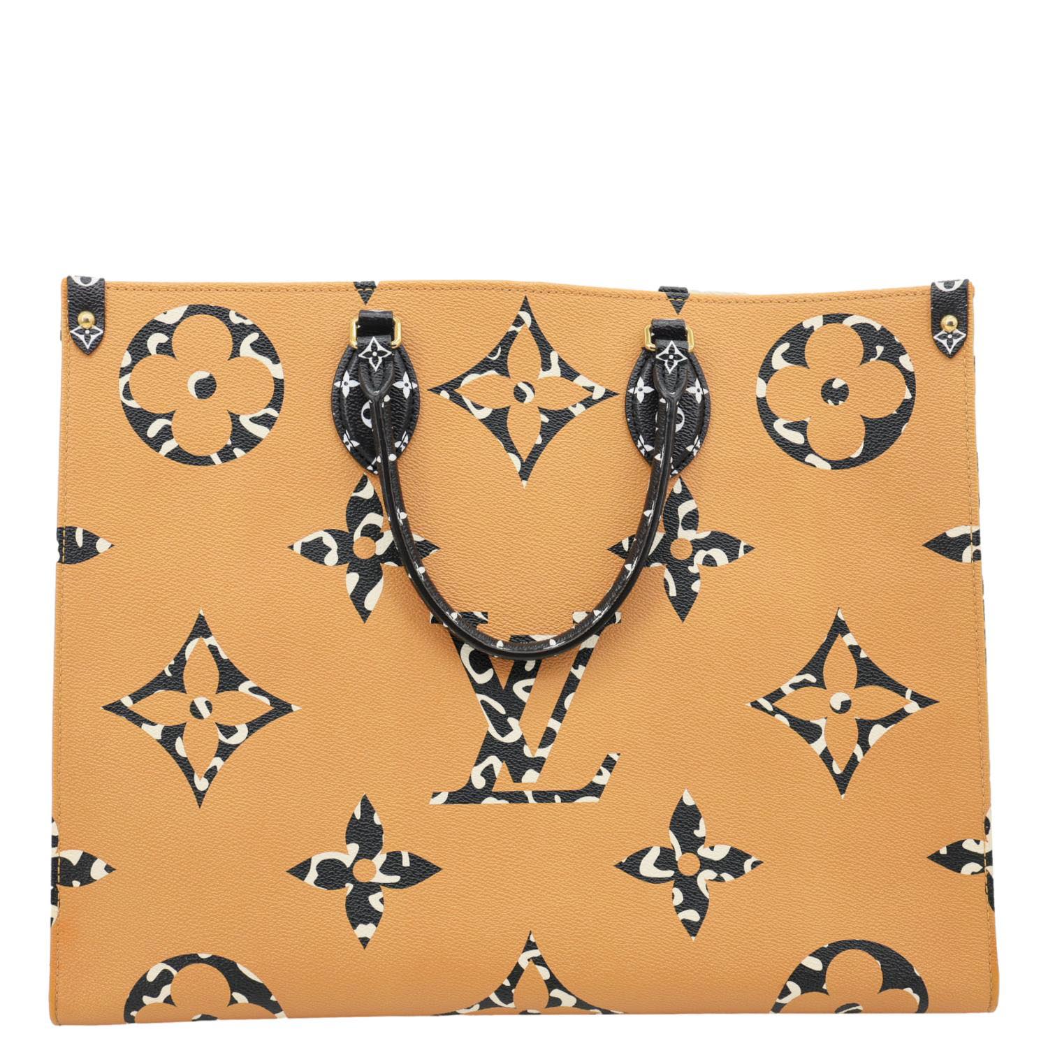 LOUIS VUITTON Onthego Jungle GM tote crafted from Giant Monogram canvas in white and orange tones. Features a spacious interior and dual top handles for bold, statement everyday carry.