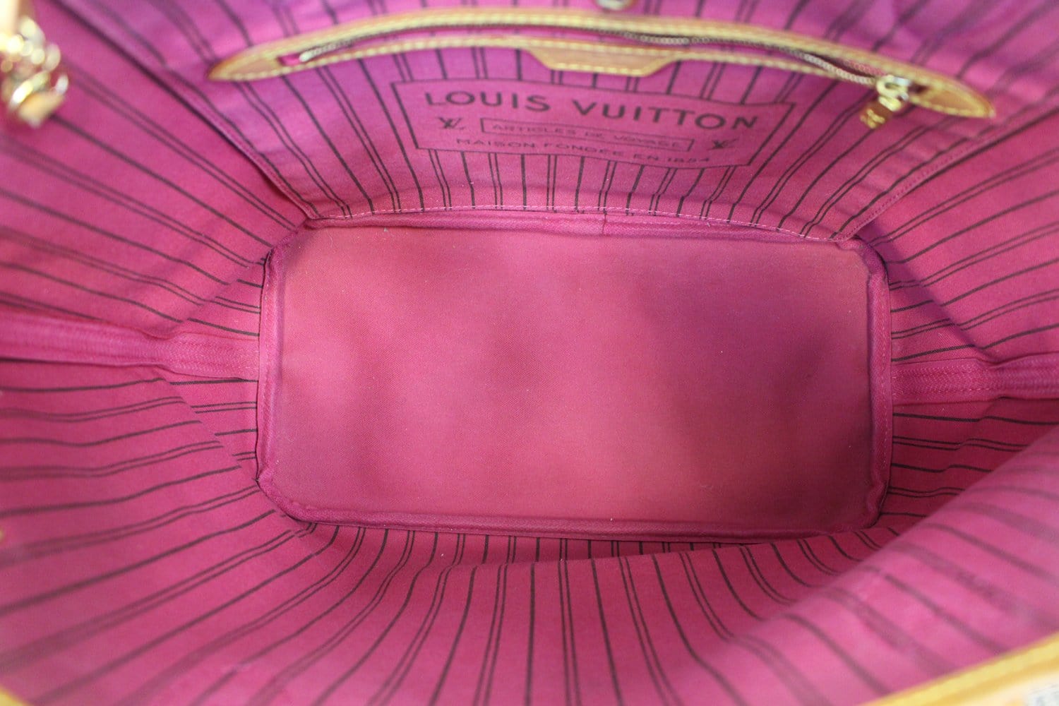 LOUIS VUITTON Monogram Neverfull MM Shoulder Bag w/Pouch Fuchsia