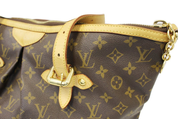 Louis Vuitton Monogram Canvas Palermo GM Bag is the one for you. It features stylish details such as inverted pleating and a gold tone zipper LV pull.