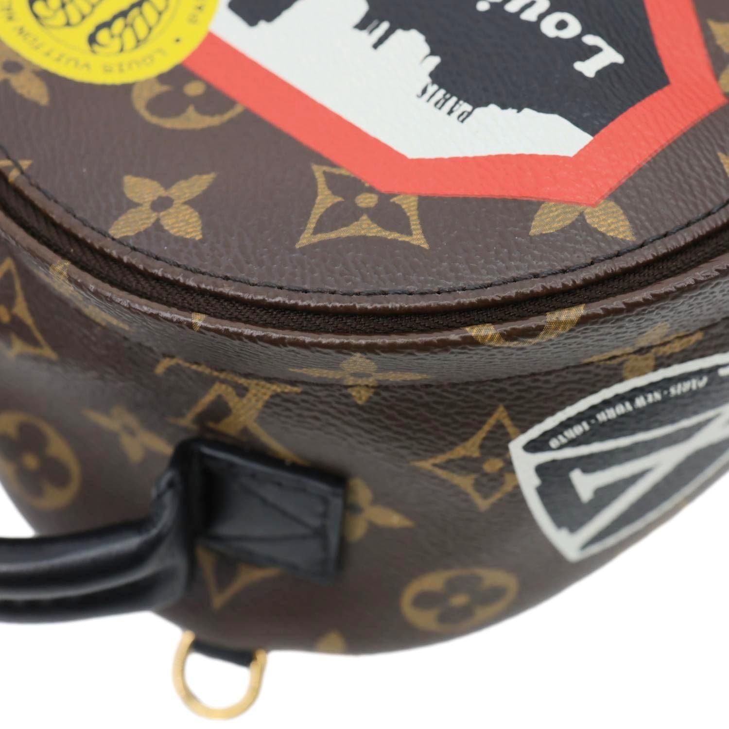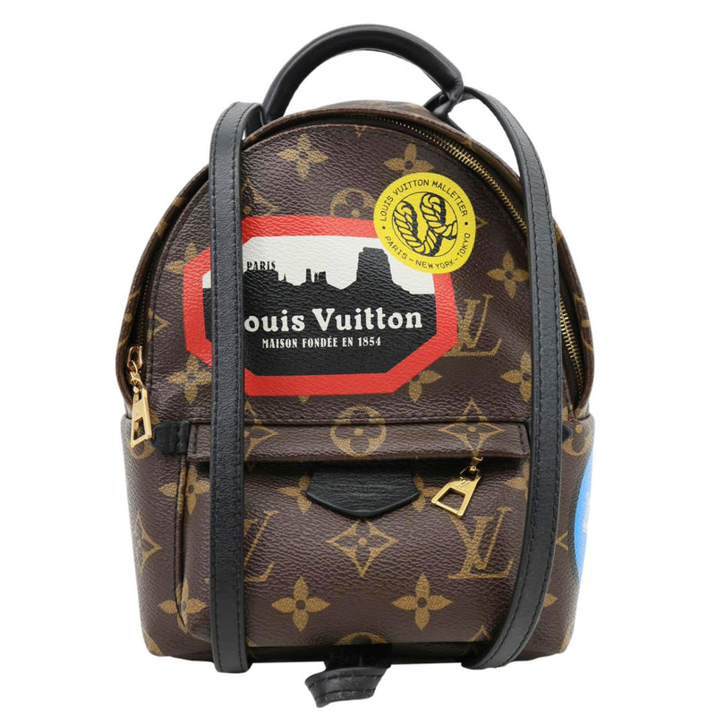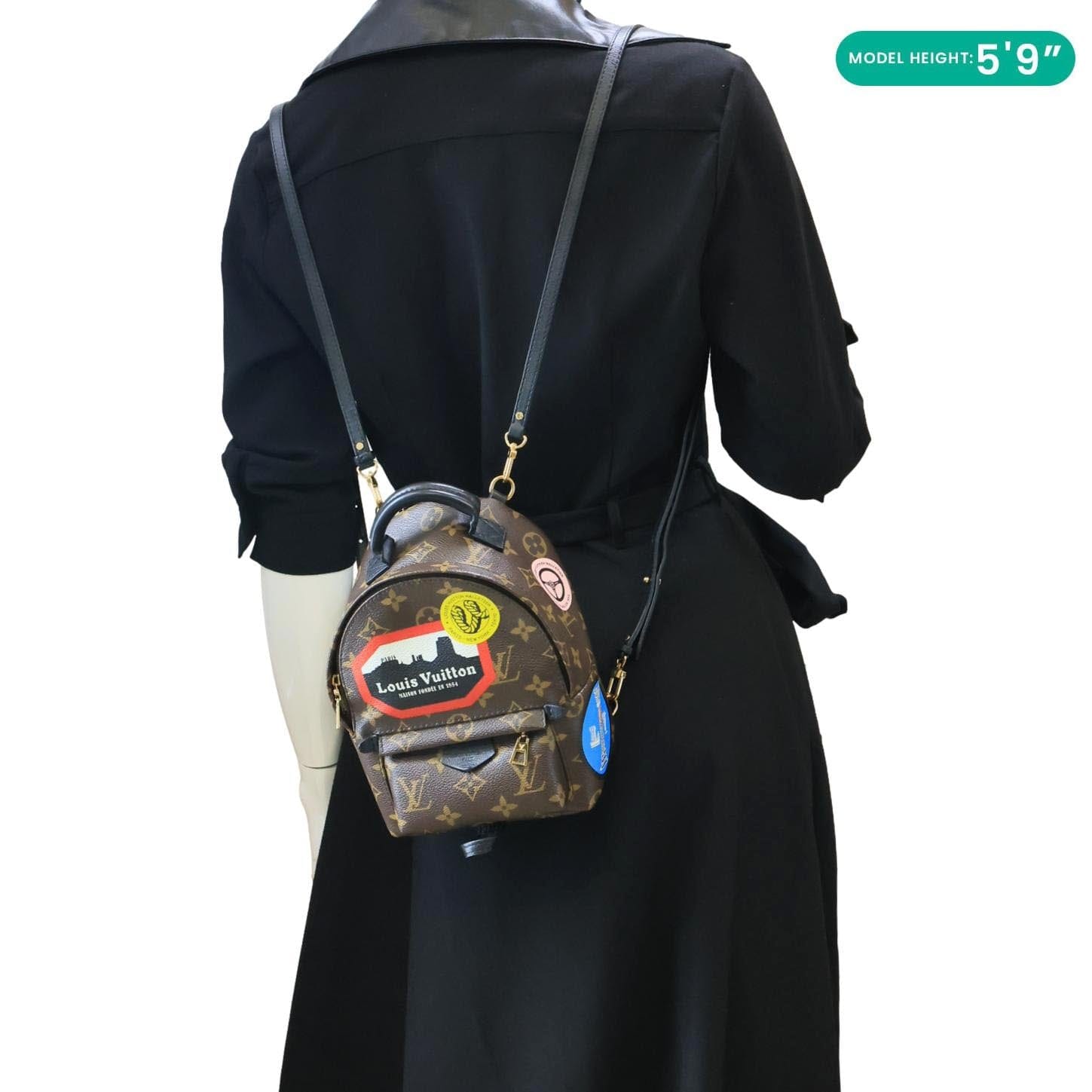 A playful take on the classic LV backpack in brown Monogram canvas featuring colorful world-tour patches. Spacious and casual design with adjustable straps, perfect for travel and everyday wear.
