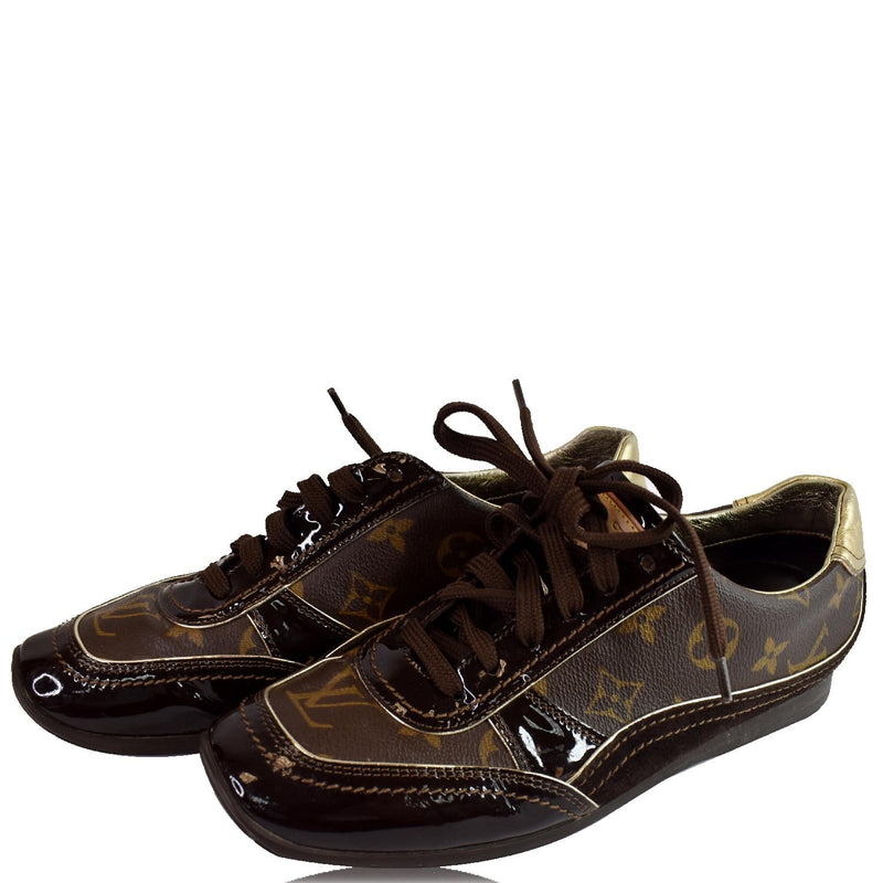 LOUIS VUITTON Monogram Patent Globe Trotter Sneakers Brown US 8