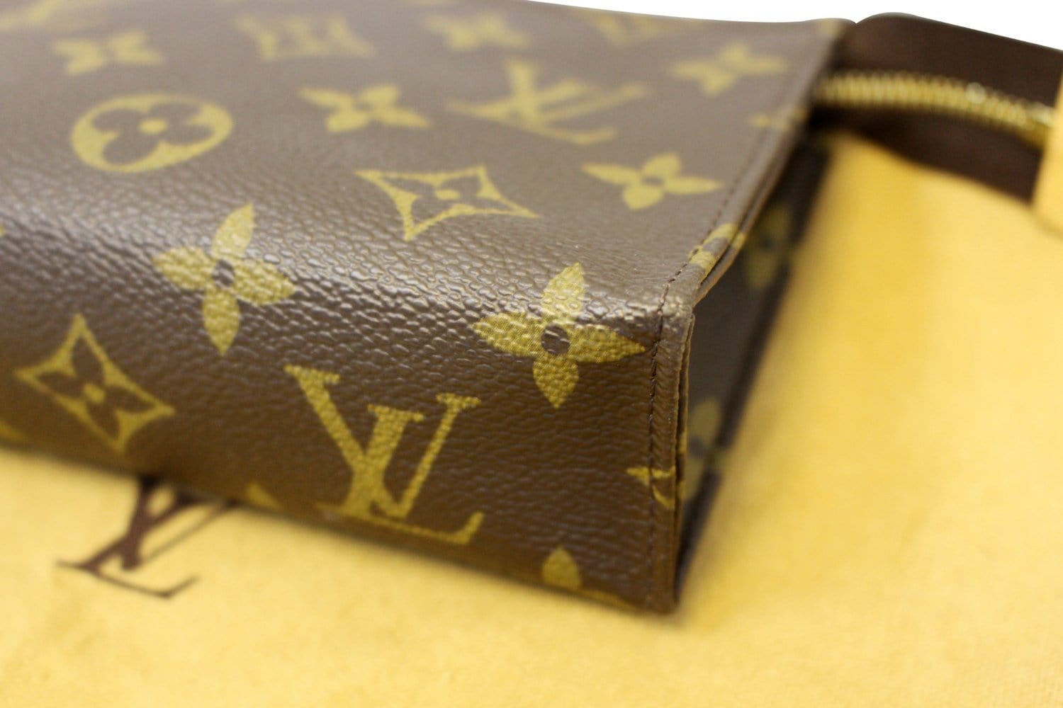 Louis Vuitton Monogram Canvas Toiletry Pouch 19 is the perfect solution for carrying your cosmetics in style. It features a washable textile lining and gusseted sides that expand. You won't want to leave home without this classic and elegant piece.