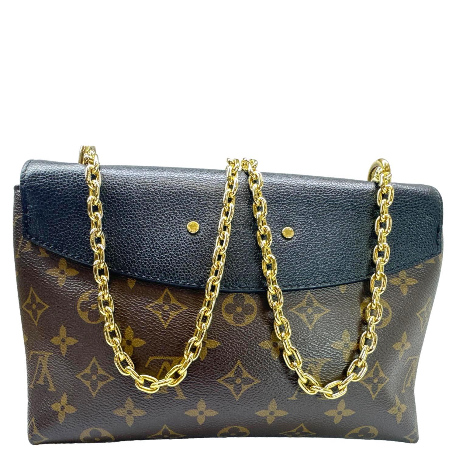 Crafted from signature Monogram canvas with smooth leather trim, the Saint Placide blends elegance with modern versatility. Its gold-tone chain strap and spacious interior make it perfect for both day and evening wear.