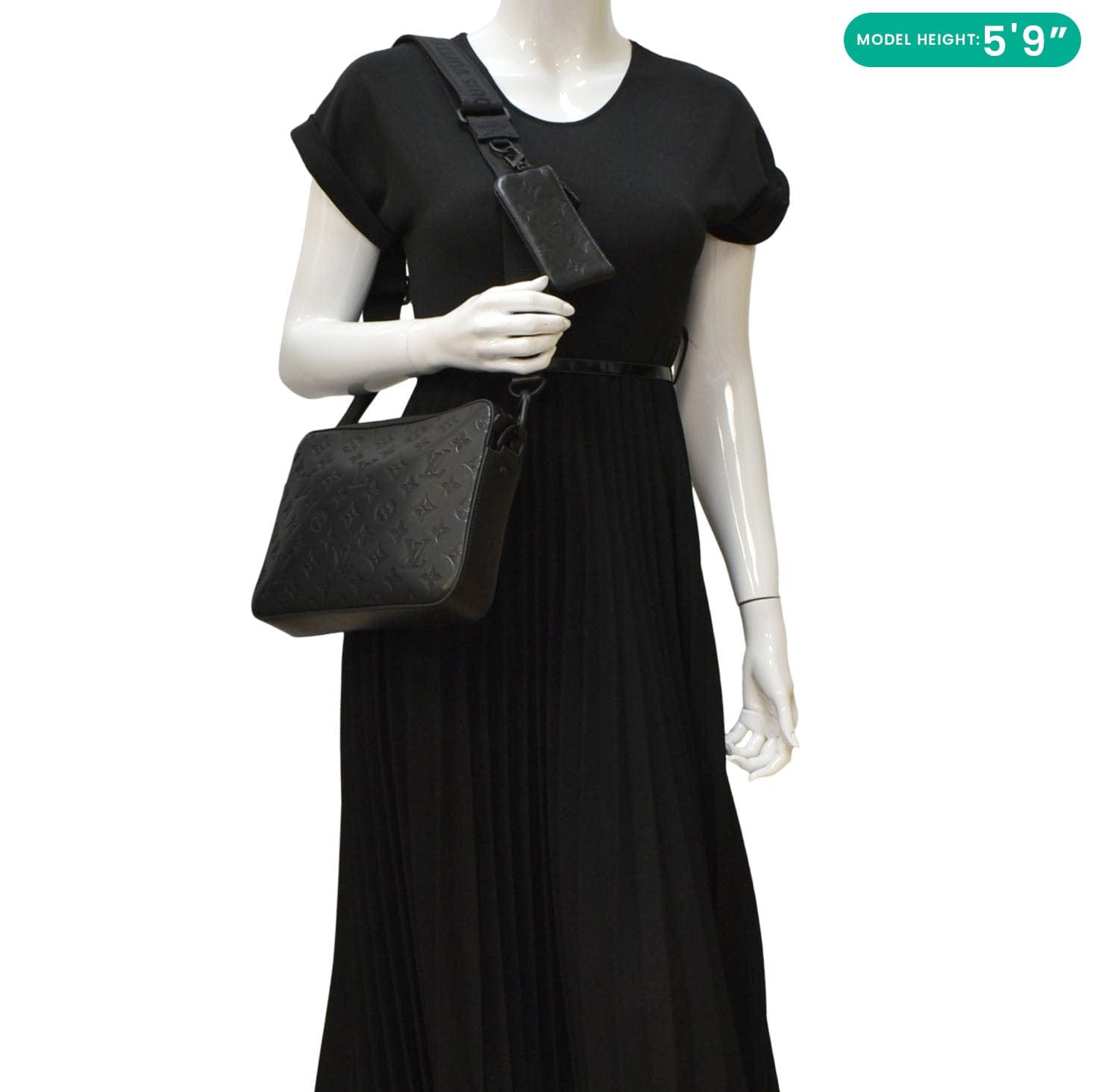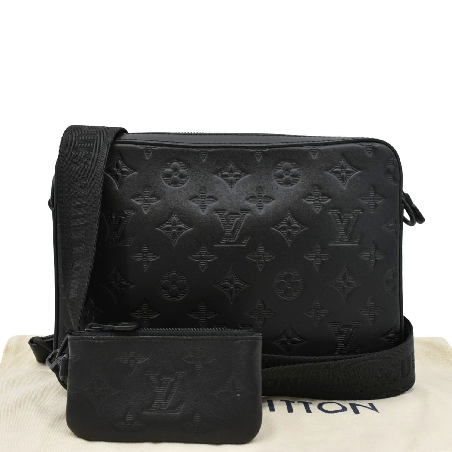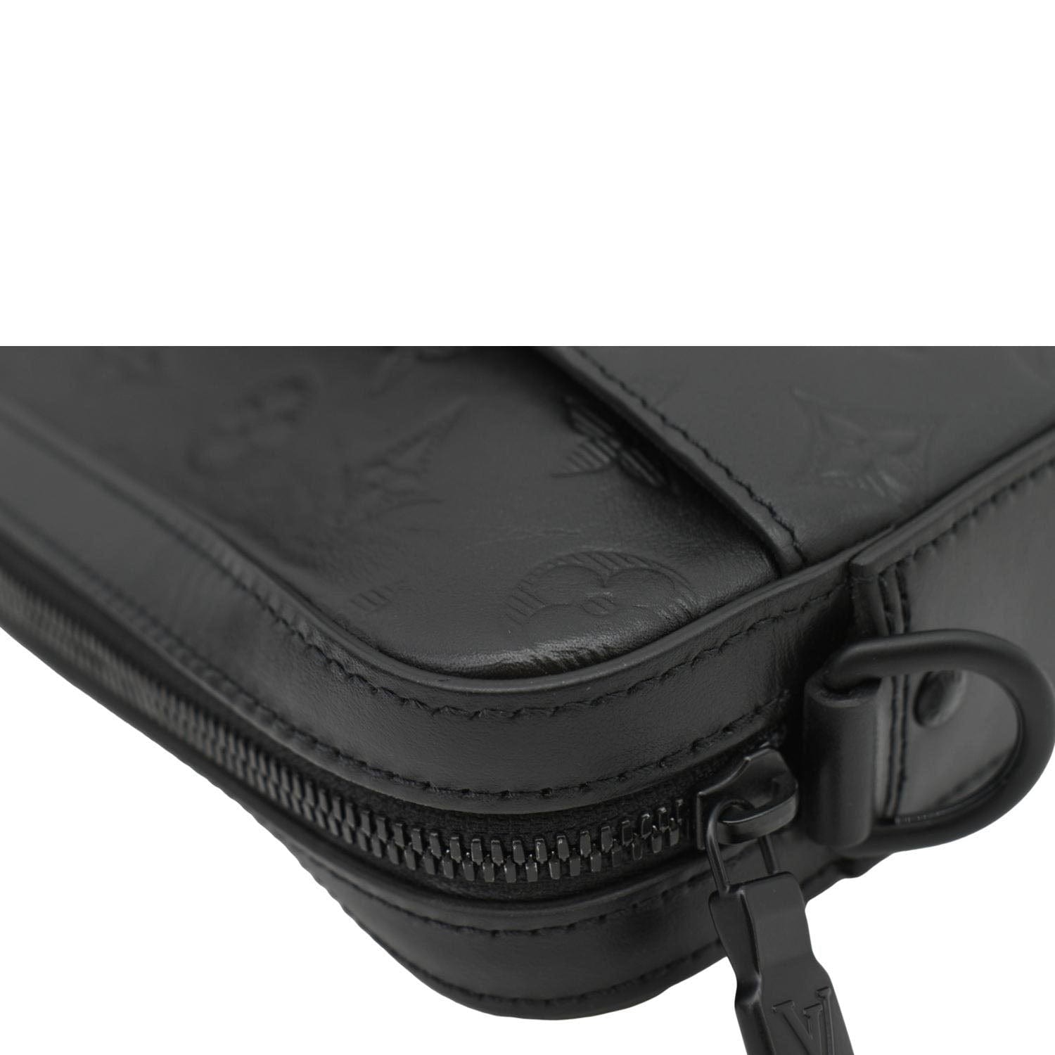 Duo Messenger Shadow Monogram Leather Crossbody Bag Black