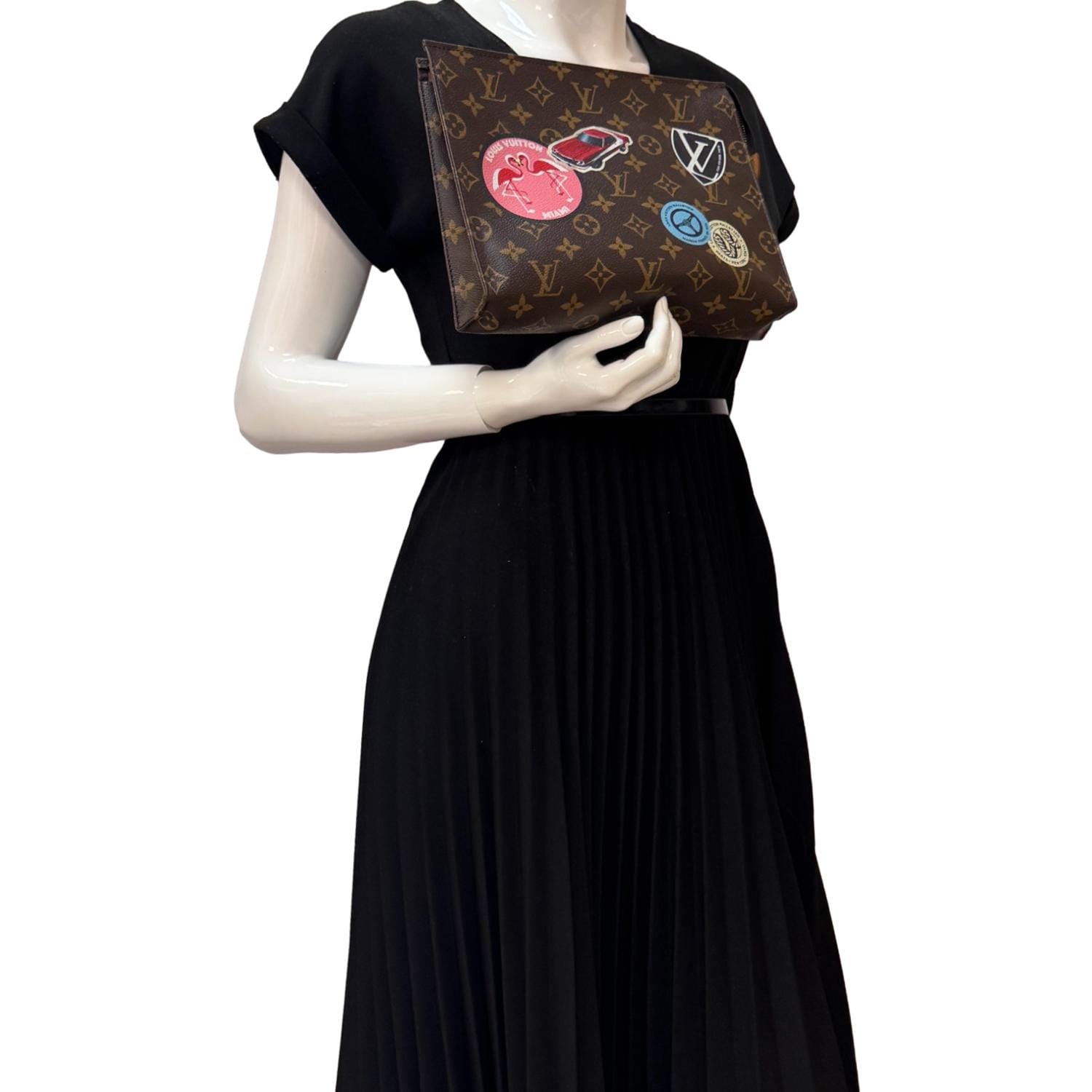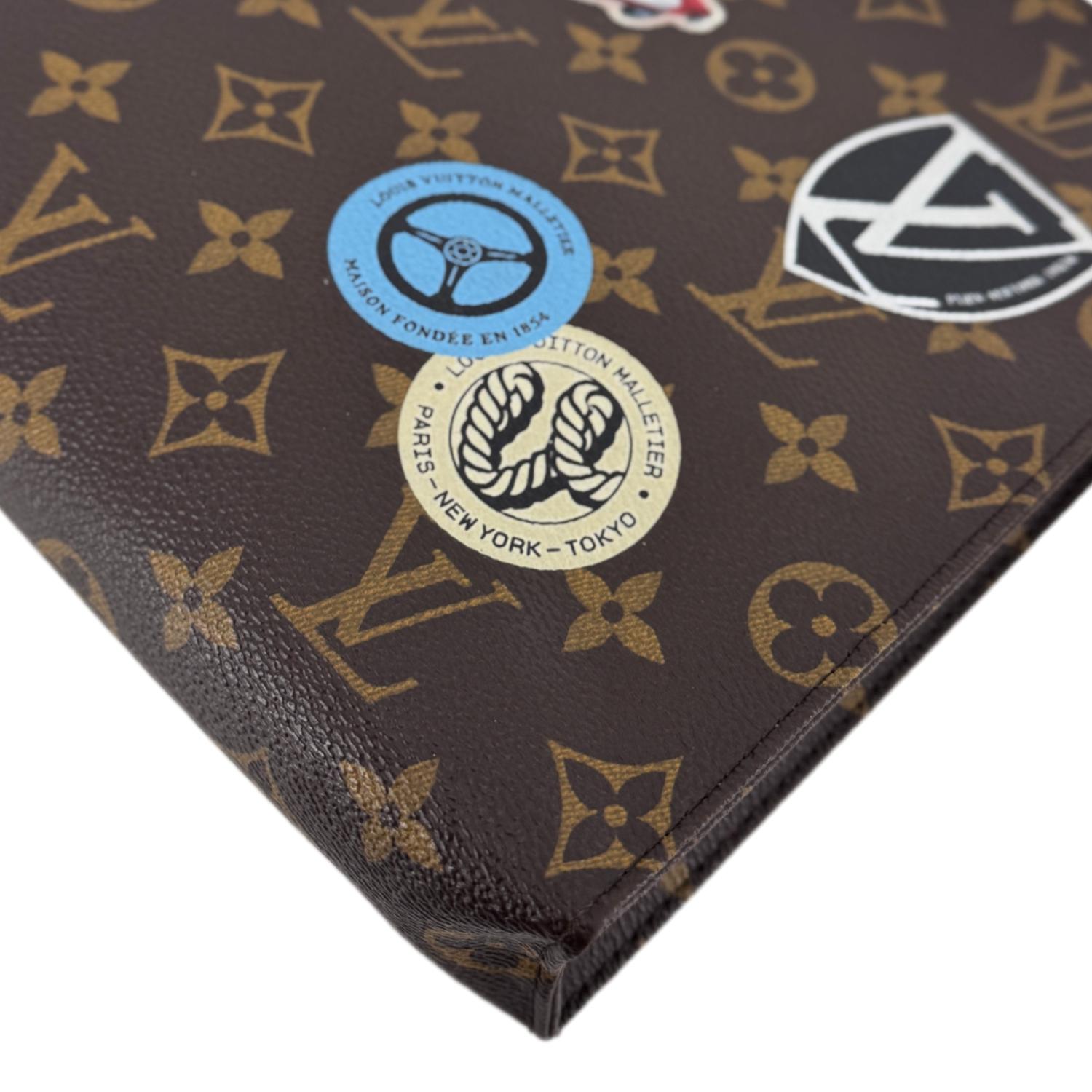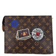 The Louis Vuitton World Tour Toiletry Pouch in Monogram Canvas Brown features iconic travel-inspired patches that pay homage to vintage luggage stickers. Crafted from signature coated canvas, it's a stylish and functional accessory for organizing essentials.