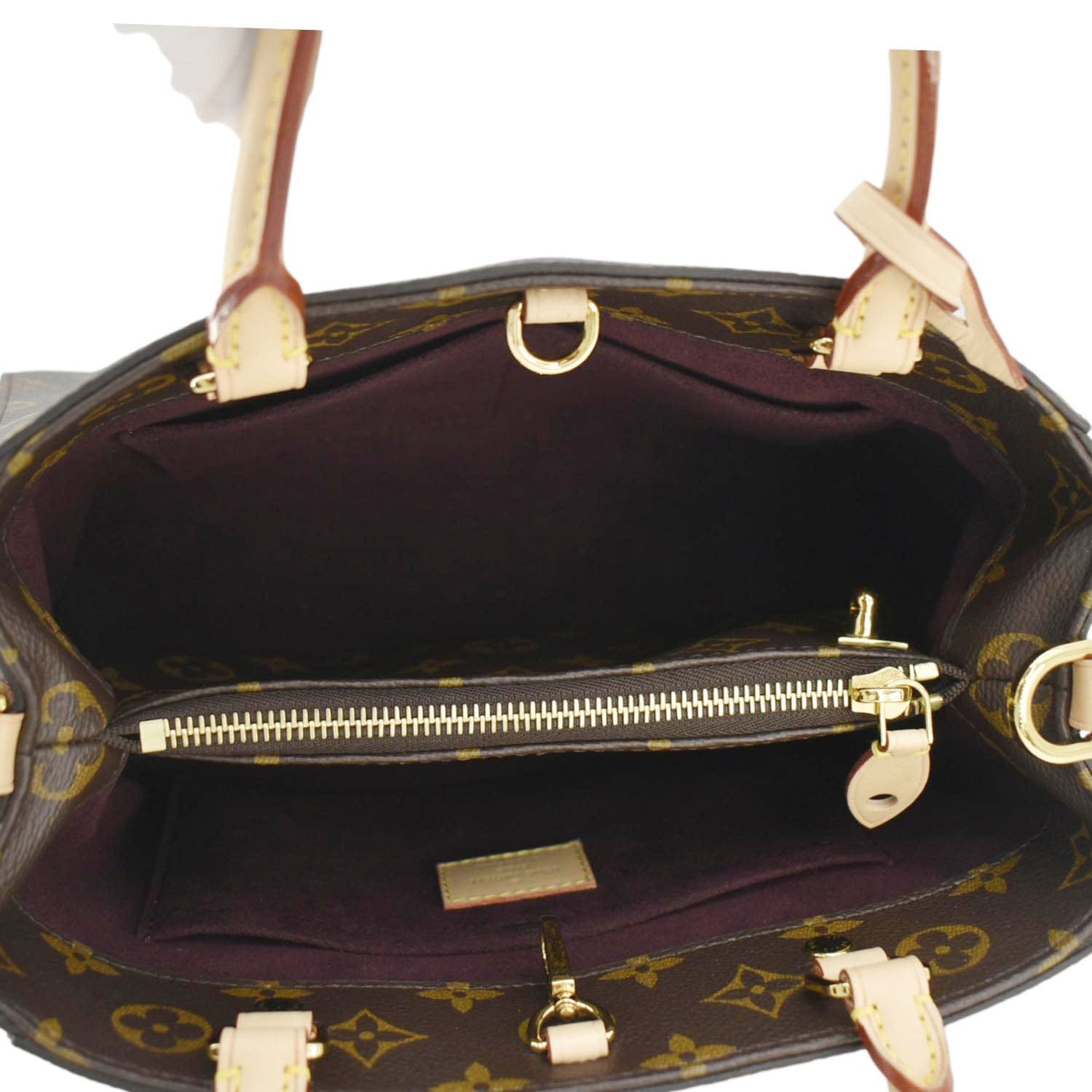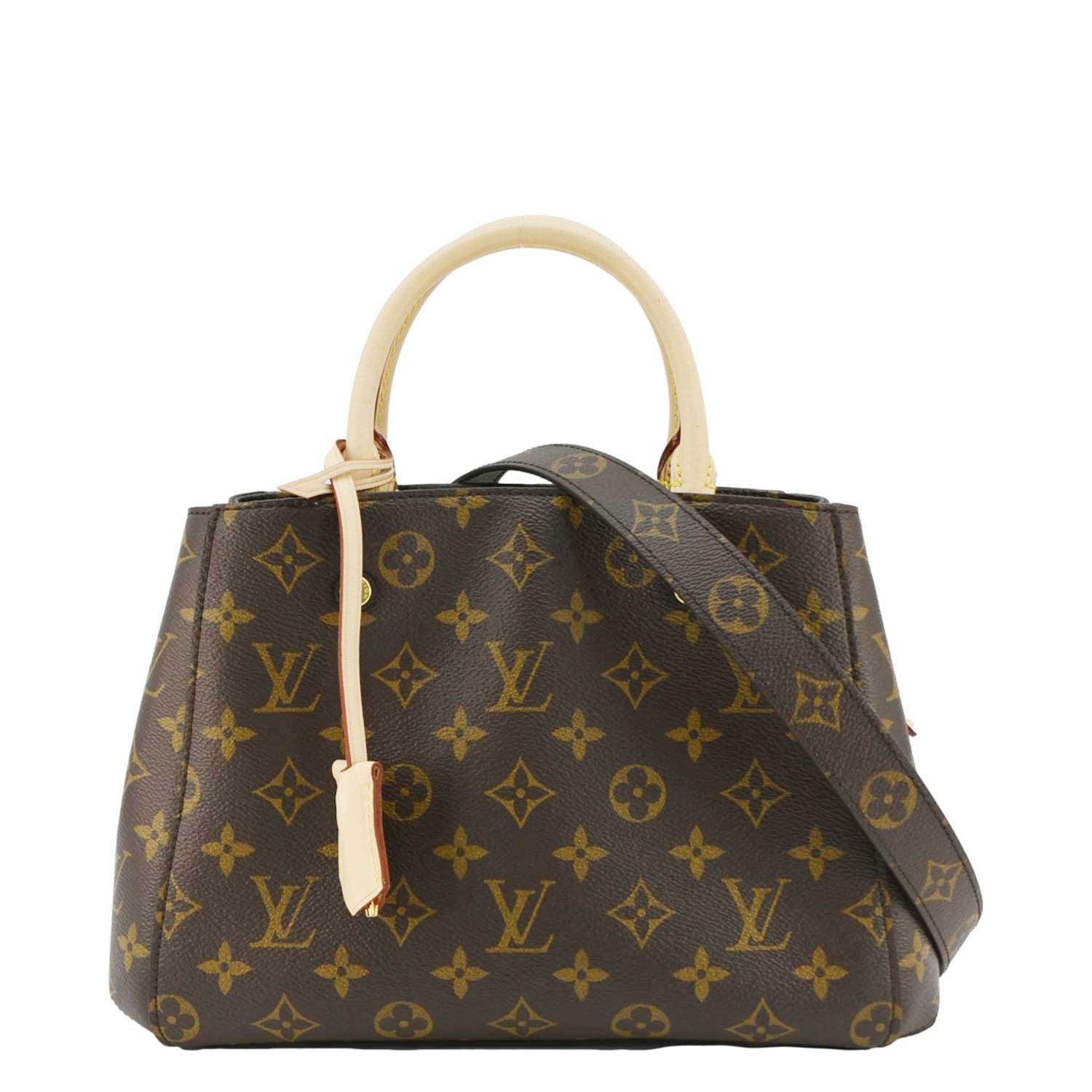 The Louis Vuitton Montaigne BB in Monogram Canvas is a stylish brown shoulder bag featuring the iconic LV monogram. It is designed with a structured silhouette and offers a spacious interior, dual top handles, and an optional shoulder strap for versatile carrying options.