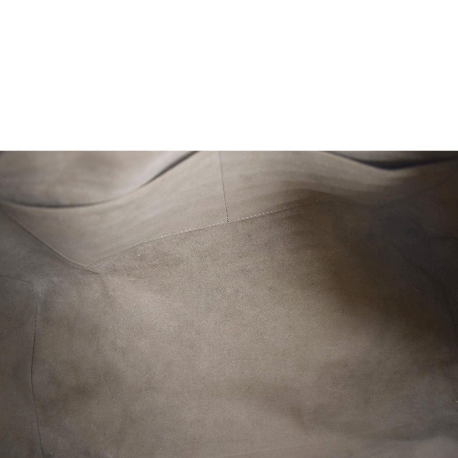This stylish bag, while in good condition, shows signs of its adventures. Its exterior displays some wear, including stains on the handles and tags, resulting in a slightly out-of-shape appearance. The tanned handles add character, complementing the bag's unique charm.