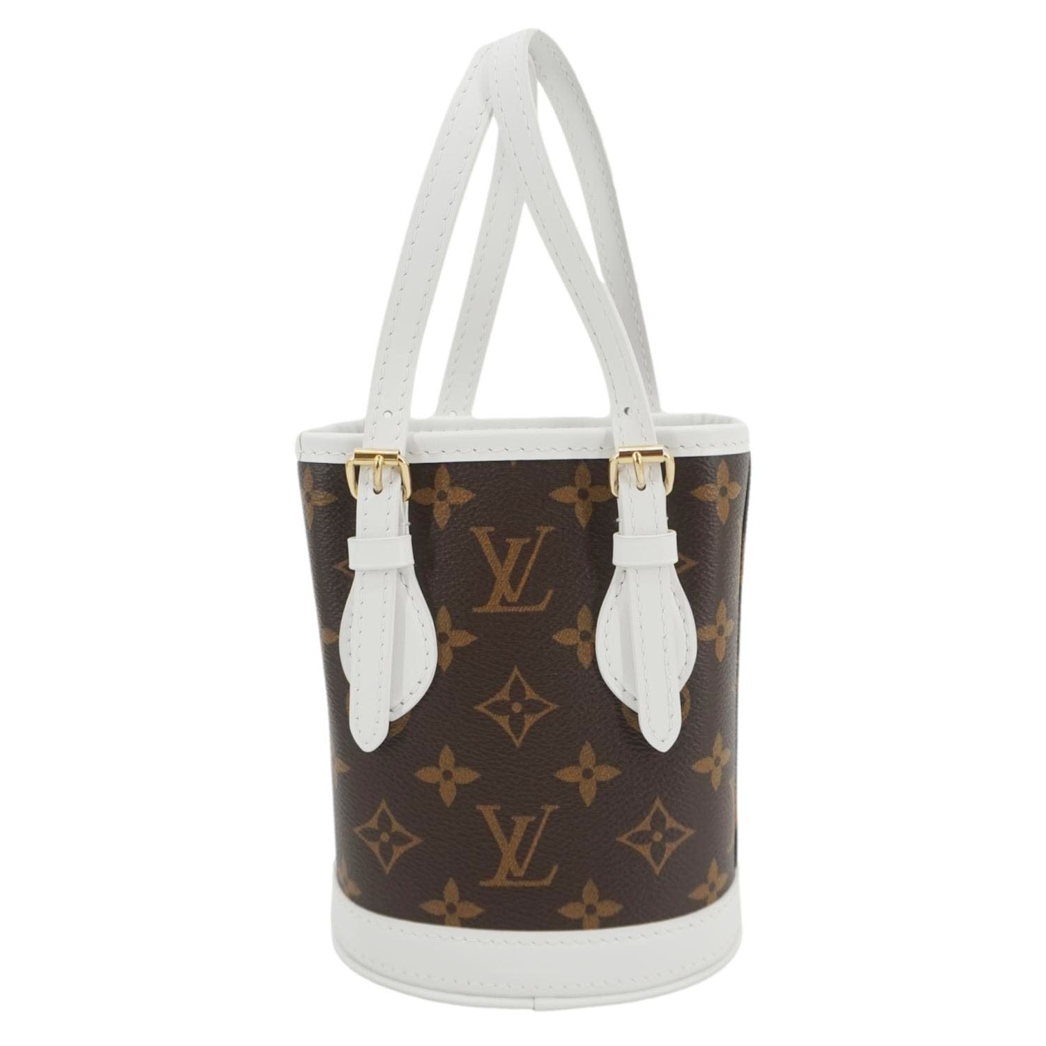 LOUIS VUITTON Nano Bucket Monogram Canvas Crossbody Bag in White