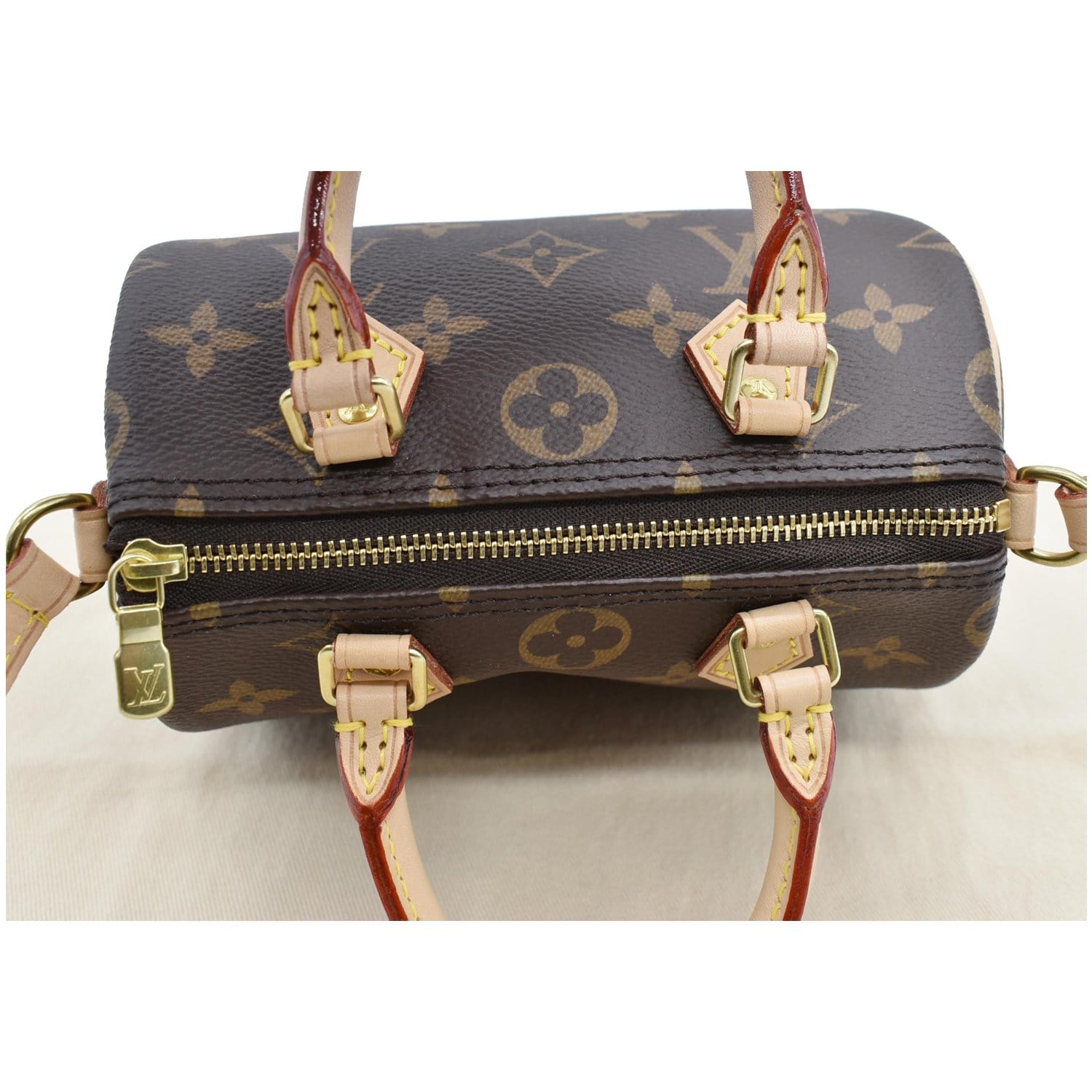 LOUIS VUITTON Nano Speedy Monogram Canvas Crossbody Bag Brown