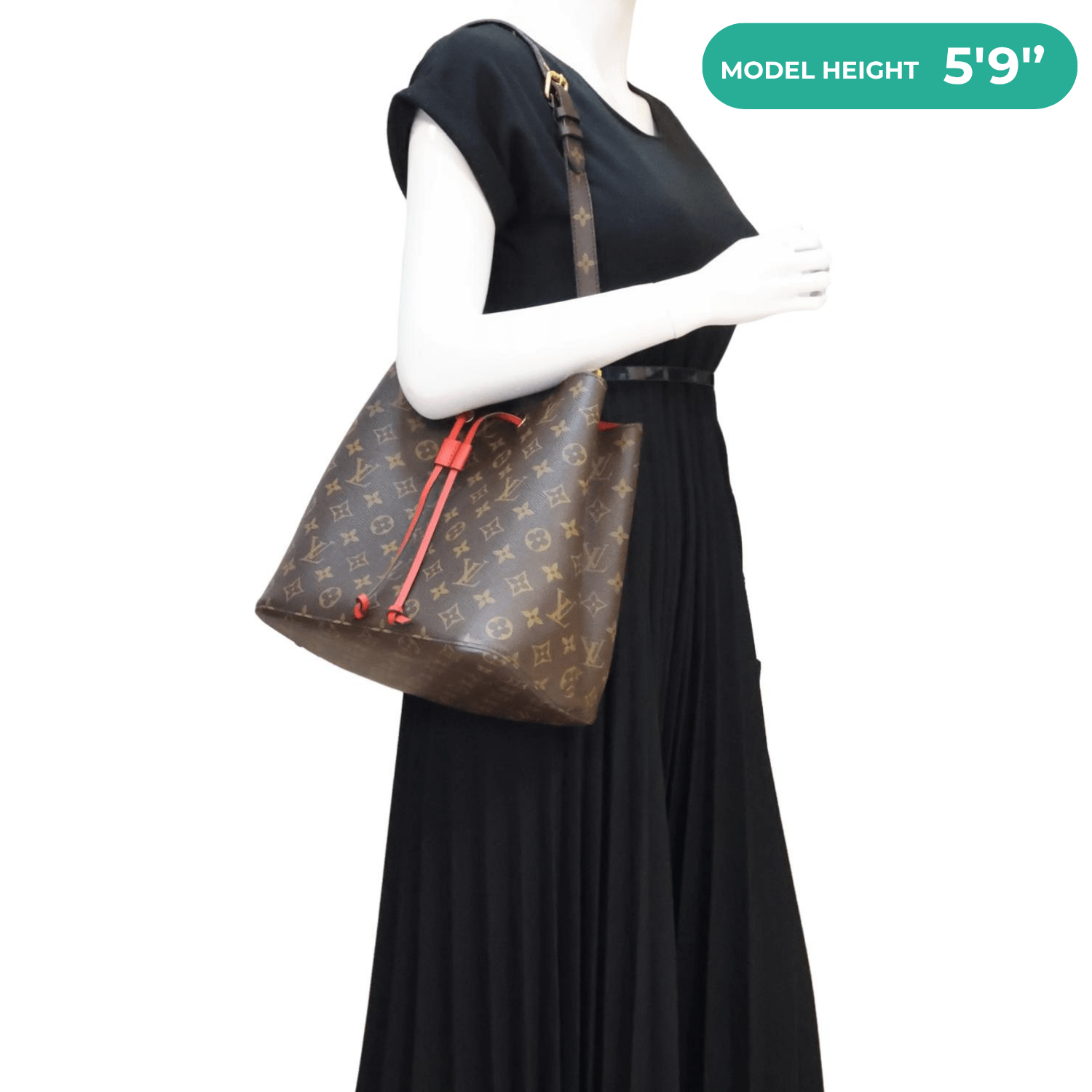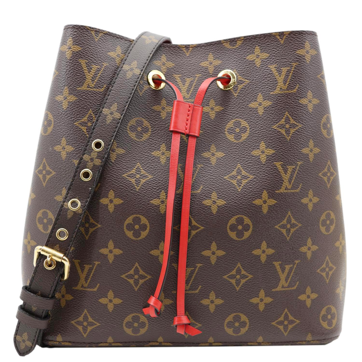 Stylish and modern, the Louis Vuitton NéoNoé MM Shoulder Bag in Monogram canvas features a vibrant red interior, drawstring closure, and adjustable strap. A perfect blend of classic design and contemporary flair.