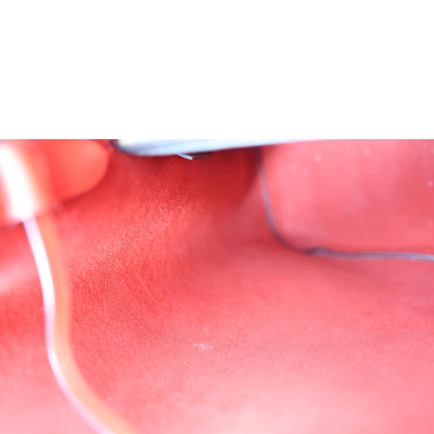 Good - The Item shows signs of use, including rubbed corners, and has stain marks on the interior. Its gold color hardware has light scratches and discoloration. The strap has sticky appearance. There is no unpleasant smell within the item.