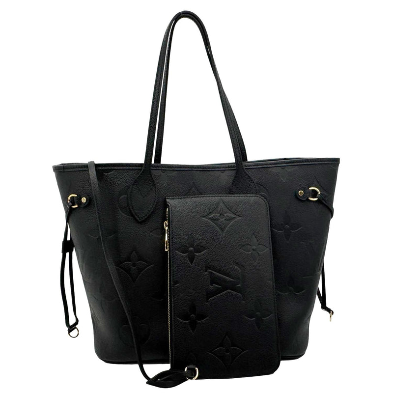 Neverfull MM Empreinte Leather Tote Shoulder Bag Black