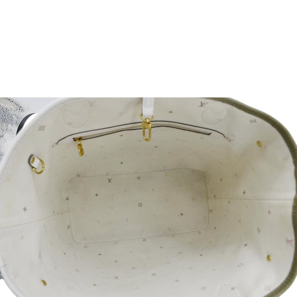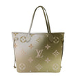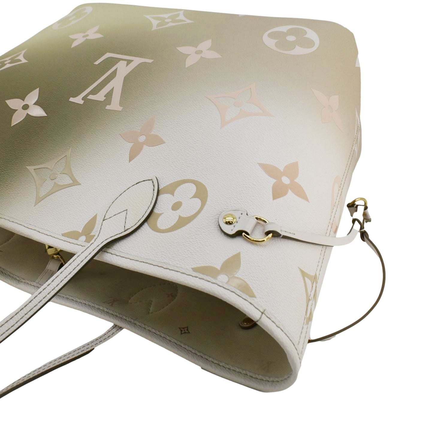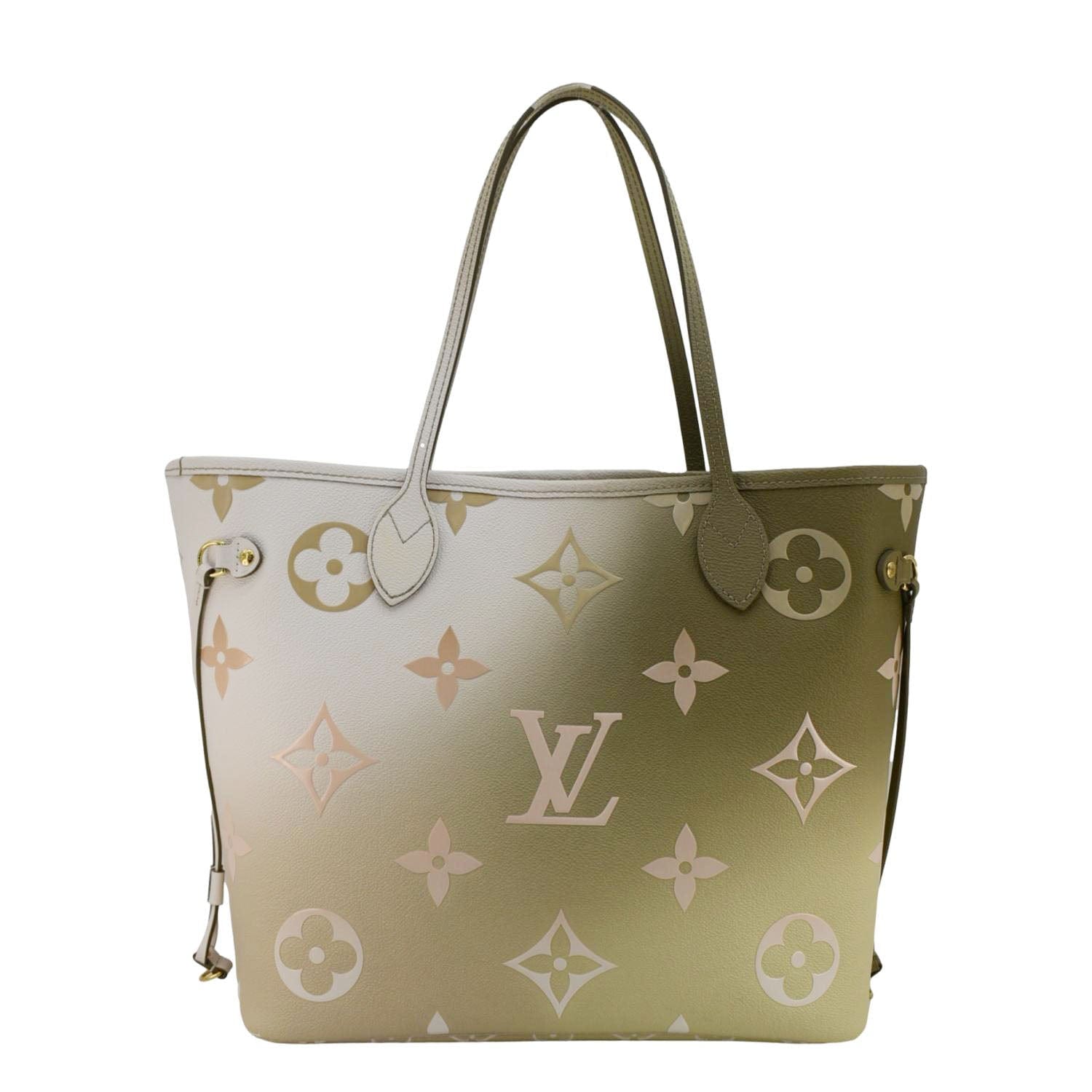 The LOUIS VUITTON Neverfull MM Tote in Sunset Khaki Monogram canvas features a versatile design with gradient tones. Its spacious interior and signature monogram print make it both stylish and functional for daily use.