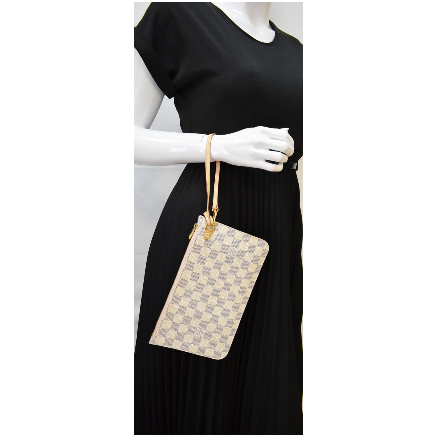 Neverfull MM Damier Azur Pochette Wristlet Pouch Rose Ballerine