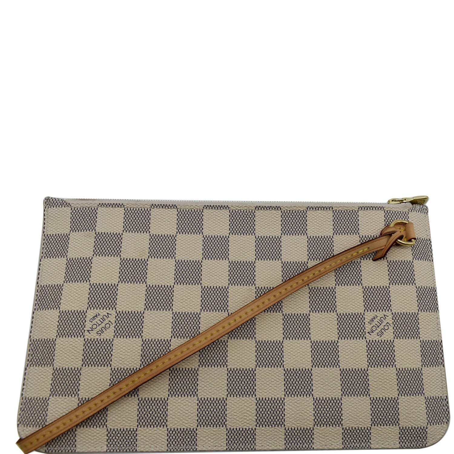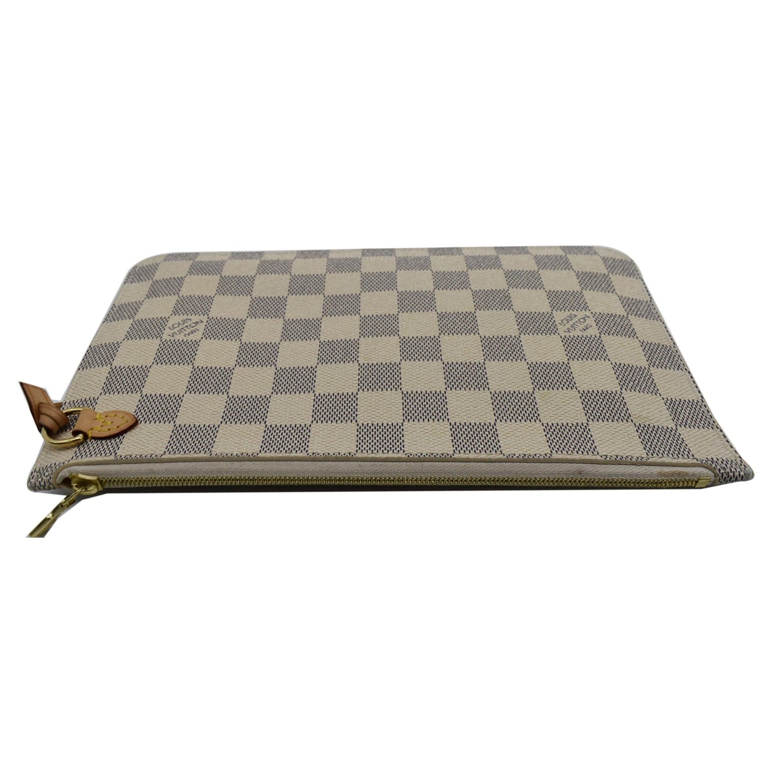 Neverfull MM Damier Azur Pochette Wristlet Pouch White