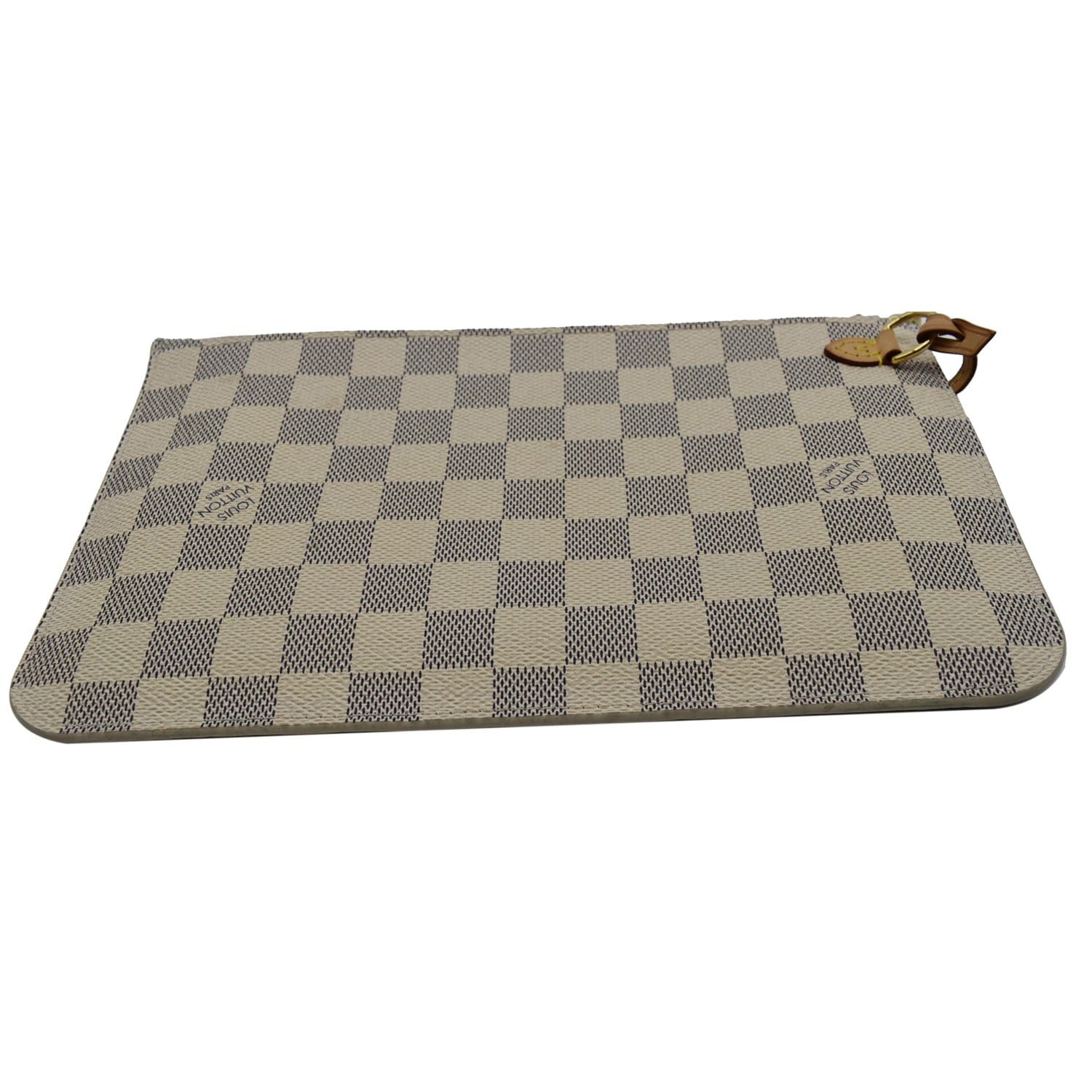 LOUIS VUITTON Neverfull MM Damier Azur Pochette Wristlet Pouch White