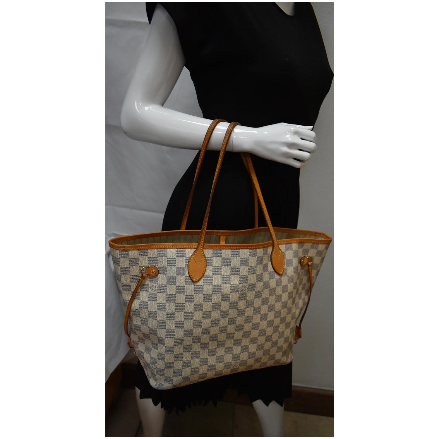 LOUIS VUITTON Neverfull MM Damier Azur Tote Shoulder Bag White