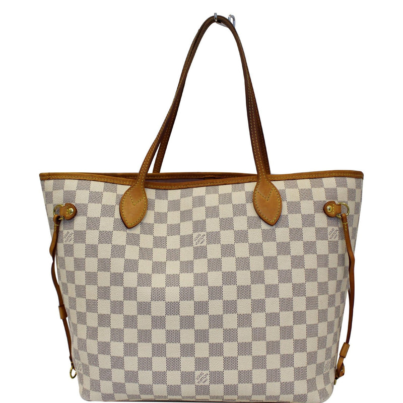 Neverfull MM Damier Azur Tote Shoulder Bag White