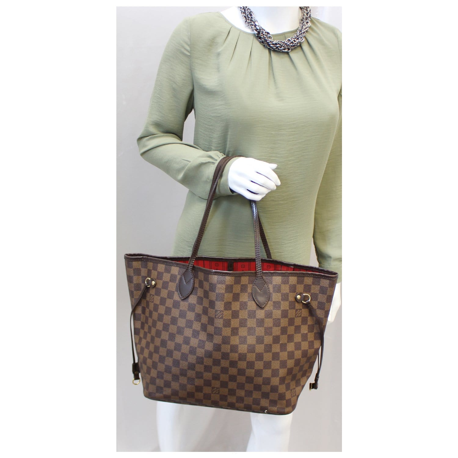 Louis Vuitton Damier Ebene Neverfull MM bag has fashion and functionality all rolled into one. This MM is the mid-size of the LV Neverfull family.